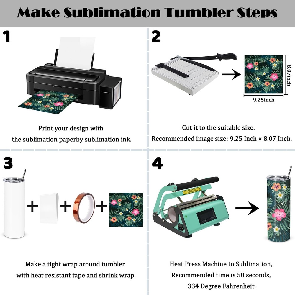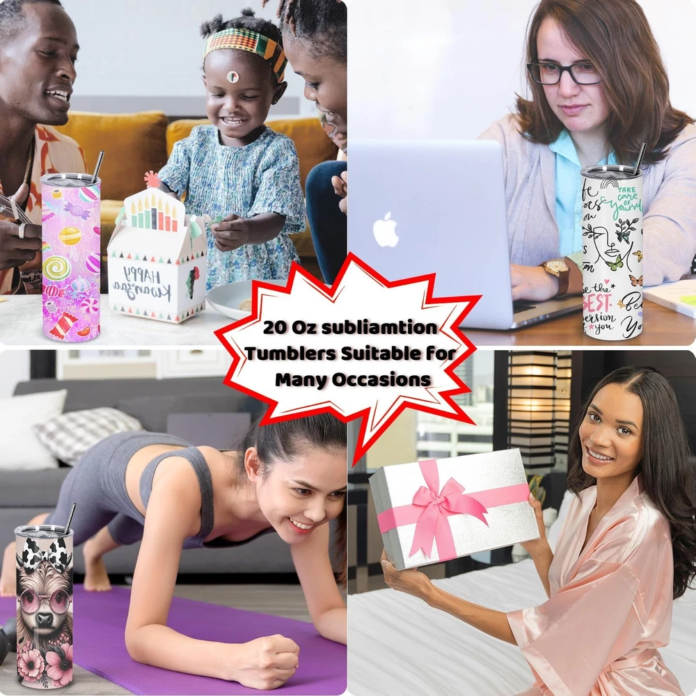 24 Pack Sublimation Tumblers, 20 oz Stainless Steel Sublimation Cups with Lid and Straw, Individually Boxed Product Details Item Package Quantity: 24 Brand: Maucircol UPC: 658738820324 EAN: 0658738820324 MPN: Does not apply Brand: Maucircol Color: White Special Feature: Manual Style: Casual Theme: Holiday Brand: Maucircol Color: White Special Feature: Manual Style: Casual Theme: Holiday Recommended Uses For Product: Home Included Components: Lid Specific Uses For Product: Cold Drinks, Hot Drinks Shape: Round Pattern: Solid Product Care Instructions: Hand Wash Only, Machine Wash Age Range (Description): Adult Material Feature: Insulated Reusability: Reusable Unit Count: 4.5 Count Item Weight: 8.48 Kilograms Product Dimensions: 3"W x 3"H Number of Items: 24 UPC: 658738820324 Size: 20 Oz Item Weight: 18.66 pounds Date First Available: March 6, 2024 High Quality Sublimation Layer : The sublimation tumblers blank 20 oz is coated with a high-quality sublimation layer, which can transfer your design clearly and brightly. Completely Straight Cup Shape: The sublimation tumblers bulk is made of high-quality 18/8 stainless steel, with double-layer vacuum insulation, can keepi drink hot for 9 hours and cold for 12 hours. The tumbler is completely straight, making it convenient for sublimation. Packaging Includes: sublimation tumbler x 24, straw x 24, straw brush x 24, non-slip silicone base x 24, shrink wrap x 24, separate box x 24, sublimation paper x 24, high resistant tape x 2. Each tumbler comes with a individually box for easy gift giving and re transportation. Suitable for Various Scenarios: The sublimation cup is suitable for various scenarios such as office,vacation, gathering, picnic, sports, etc. The size of the cup is suitable for most cup holders. Crafted with exquisite and unique designs on the cup, it is good gift for giving to friends, family, and customers. Two Ways to Sublimate: If you choose heat press machine to sublimate your tumblers, set temperature to 330 F for 50 seconds and rotate to the other side for another 50 seconds . If you use oven, set emperature to 360 degrees F for 5-6 minutes.
