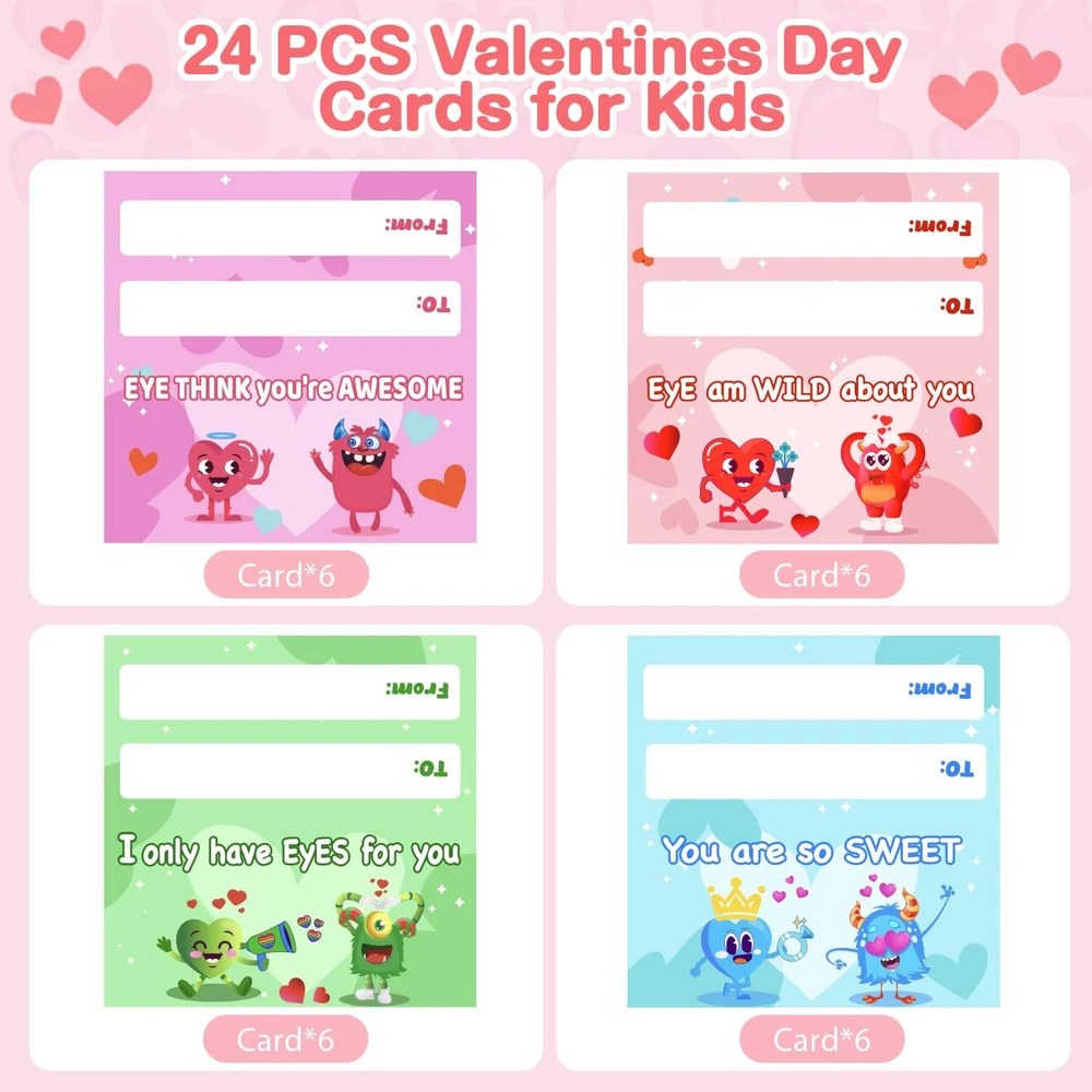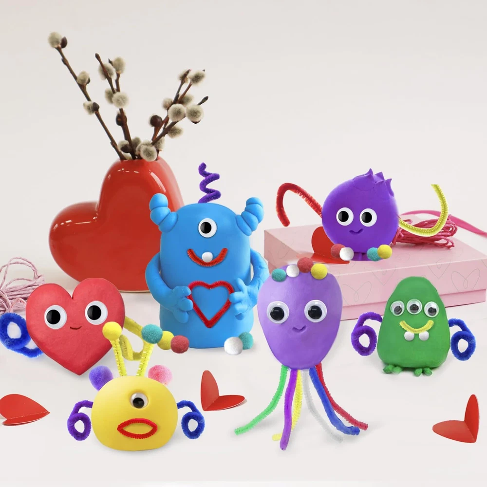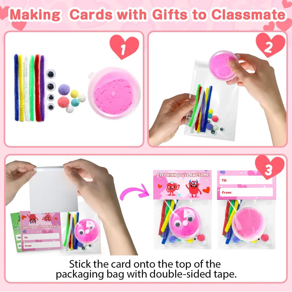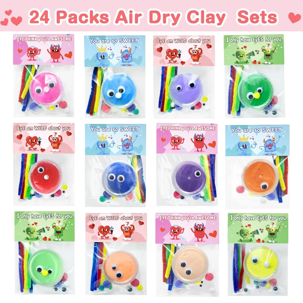 【Super Value Valentines Day Gifts for Kids】--The kid Valentines gift set includes 24 packs DIY air dry clay sets- providing everything kids need to unleash their creativity and design their unique crafts. Each kit includes 1 air dry clay, 6 colorful pipe cleaners, 4 pcs wiggle googly eyes and 6 pom-poms. 【Super Value Valentines Day Gifts for Kids】--The kid Valentines gift set includes 24 packs DIY air dry clay kits- providing everything kids need to unleash their creativity and design their unique Valentine's Day crafts. Each kit includes 1 air dry clay, 6 colorful pipe cleaners, 4 pcs wiggle googly eyes and 6 pom-poms. 【24 PCS Valentines Cards for Kids Classroom】--There are 24 pcs 4 different designed Valentines cards.Then,stick the write-completed Valentines day card onto the top of the air dry clay kit packaging bag with double-sided tape. Each card has a unique Valentine punchline.Children can send these cards to classmates or friends to express love to them on Valentines Day. 【Much Fun for Kids】--This modeling clay is very soft to the touch and non messy. The kit allows children to build their own unique “love craft” providing hours of creative fun.This complete modeling clay kit makes for an ideal gift for kids or students. 【Great Party Favors for Most Occasions】--Perfect for classroom activities, Valentine's Day party,birthday parties,classroom gift exchanges or other occasion.These air dry clay kits are great Valentines Day party favors for kids. 【Safe & High Quality】--Made of high-quality, 100% Safe, Non-toxic material, meet with ASTM F963 safety standards and CPC certified which is safe for kids.If you are not satisfied with the product, please contact us and we will provide you with a satisfactory response within 24 hours.