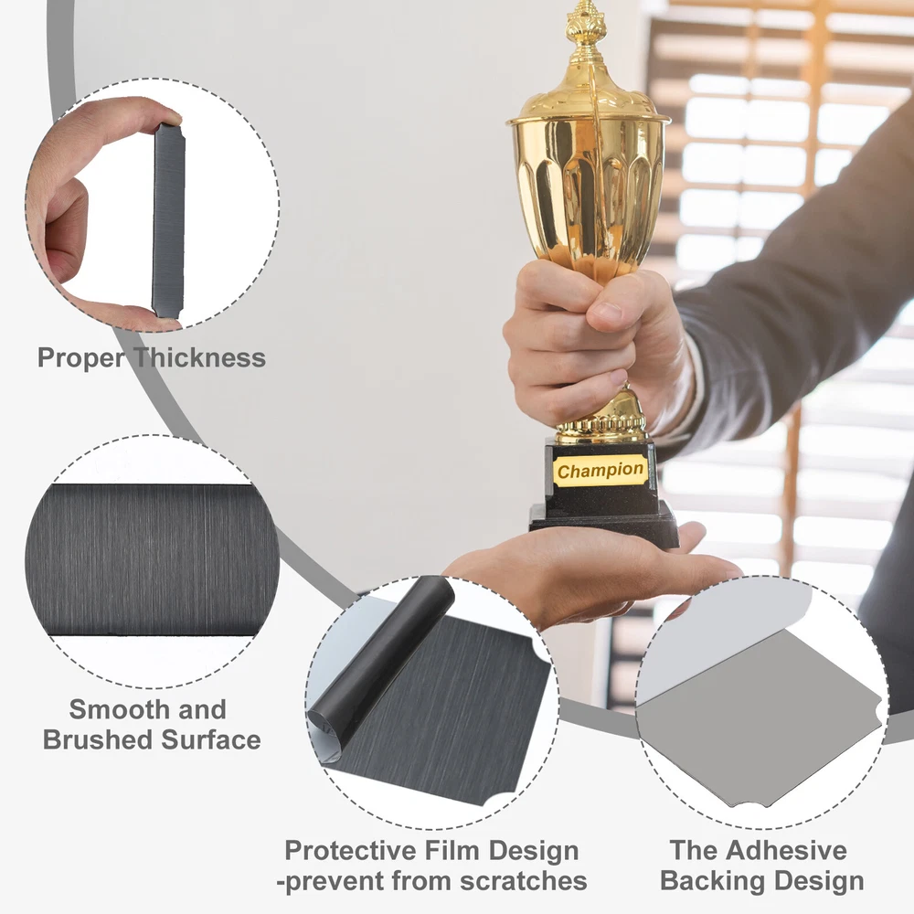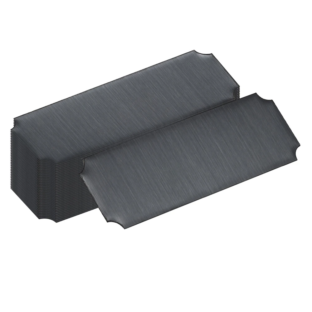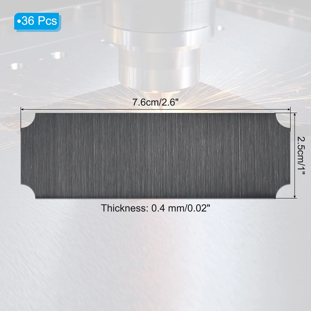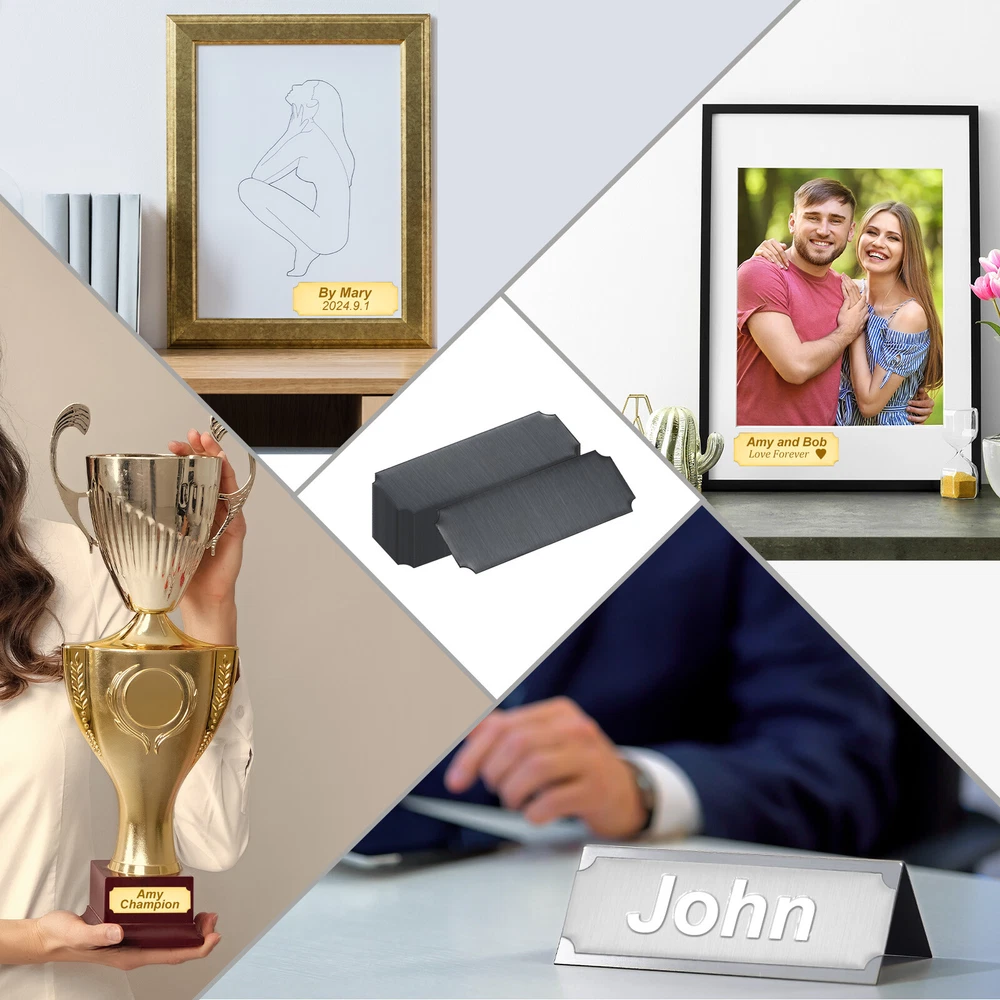 Document Our engraved nameplates are perfect for mounting on plaques, picture frames, sweaters, trophies, bags, display boxes, flag cases, and anything else.SpecificationMaterial: Stainless SteelColor: BlackSize: 7.6 x 2.5 cm/3 x 1 Inch(L*W)Thickness: 0.4 mm/0.02 InchPacking List: 24 Pcs x Engraved NameplateAdvantageOur engraved nameplates are made of brushed stainless steel which is durable, stable, not easy to fade, rust, or break, and can be used for a long time. With a smooth surface, it will not scratch your skin.The right thickness makes the plate stronger and allows for deeper engraving. These elegant nameplates have a beautiful luster and a simple design. Suitable for various crafts to add brilliance.The protective film design can effectively prevent scratches. The adhesive backing design allows you to stick this nameplate anywhere without any tools and it can be firmly on the objects.InstructionPlace a metal workbench block underneath the blank stamping tags for better stamping.NOTE:1. There may be light scratches and blemishes due to shipping, but they can be polished.2. Only for laser engraving, not suitable for mechanical engraving.3. Please remove the protective film before use. 24 Pcs 3" x 1" Engraved Name Plate Picture Frame Label Art Tag, Black Our engraved nameplates are perfect for mounting on plaques, picture frames, sweaters, trophies, bags, display boxes, flag cases, and anything else. Specification Material: Stainless Steel Color: Black Size: 7.6 x 2.5 cm/3 x 1 Inch(L*W) Thickness: 0.4 mm/0.02 Inch Packing List: 24 Pcs x Engraved Nameplate Advantage Our engraved nameplates are made of brushed stainless steel which is durable, stable, not easy to fade, rust, or break, and can be used for a long time. With a smooth surface, it will not scratch your skin. The right thickness makes the plate stronger and allows for deeper engraving. These elegant nameplates have a beautiful luster and a simple design. Suitable for various crafts to add brilliance. The protective film design can effectively prevent scratches. The adhesive backing design allows you to stick this nameplate anywhere without any tools and it can be firmly on the objects. Instruction Place a metal workbench block underneath the blank stamping tags for better stamping. NOTE: 1. There may be light scratches and blemishes due to shipping, but they can be polished. 2. Only for laser engraving, not suitable for mechanical engraving. 3. Please remove the protective film before use. Hot Item Payment 1.We accept eBay payment . 2.Payment must be received within 7 business days of auction closing. Shipping 1.We ship to your eBay or Paypal address. Please make sure your eBay and Paypal address is correct before you pay. 2.Items will be shipped within 1-3 business day when we received payment. 3.Delivery time depends on destination and other factors. Description Policy 24 Pcs 3" x 1" Engraved Name Plate Picture Frame Label Art Tag, Black Our engraved nameplates are perfect for mounting on plaques, picture frames, sweaters, trophies, bags, display boxes, flag cases, and anything else. Specification Material: Stainless Steel Color: Black Size: 7.6 x 2.5 cm/3 x 1 Inch(L*W) Thickness: 0.4 mm/0.02 Inch Packing List: 24 Pcs x Engraved Nameplate Advantage Our engraved nameplates are made of brushed stainless steel which is durable, stable, not easy to fade, rust, or break, and can be used for a long time. With a smooth surface, it will not scratch your skin. The right thickness makes the plate stronger and allows for deeper engraving. These elegant nameplates have a beautiful luster and a simple design. Suitable for various crafts to add brilliance. The protective film design can effectively prevent scratches. The adhesive backing design allows you to stick this nameplate anywhere without any tools and it can be firmly on the objects. Instruction Place a metal workbench block underneath the blank stamping tags for better stamping. NOTE: 1. There may be light scratches and blemishes due to shipping, but they can be polished. 2. Only for laser engraving, not suitable for mechanical engraving. 3. Please remove the protective film before use. Hot Item Payment 1.We accept eBay payment . 2.Payment must be received within 7 business days of auction closing. Shipping 1.We ship to your eBay or Paypal address. Please make sure your eBay and Paypal address is correct before you pay. 2.Items will be shipped within 1-3 business day when we received payment. 3.Delivery time depends on destination and other factors.