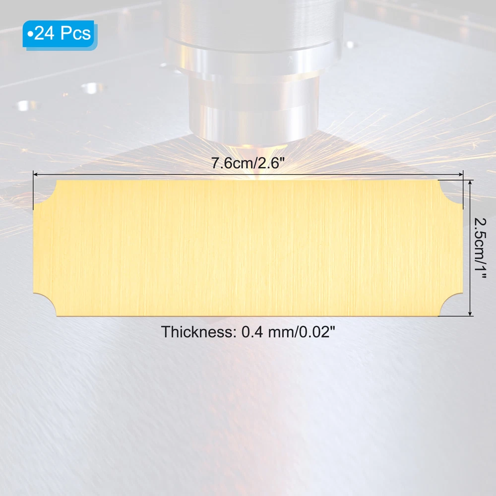 Document Our engraved nameplates are perfect for mounting on plaques, picture frames, sweaters, trophies, bags, display boxes, flag cases, and anything else.SpecificationMaterial: Stainless SteelColor: Gold ToneSize: 7.6 x 2.5 cm/3 x 1 Inch(L*W)Thickness: 0.4 mm/0.02 InchPacking List: 24 Pcs x Engraved NameplateAdvantageOur engraved nameplates are made of brushed stainless steel which is durable, stable, not easy to fade, rust, or break, and can be used for a long time. With a smooth surface, it will not scratch your skin.The right thickness makes the plate stronger and allows for deeper engraving. These elegant nameplates have a beautiful luster and a simple design. Suitable for various crafts to add brilliance.The protective film design can effectively prevent scratches. The adhesive backing design allows you to stick this nameplate anywhere without any tools and it can be firmly on the objects.InstructionPlace a metal workbench block underneath the blank stamping tags for better stamping.NOTE:1. There may be light scratches and blemishes due to shipping, but they can be polished.2. Only for laser engraving, not suitable for mechanical engraving.3. Please remove the protective film before use. 24 Pcs 3" x 1" Engraved Name Plate Picture Frame Label Art Tag, Gold Tone Our engraved nameplates are perfect for mounting on plaques, picture frames, sweaters, trophies, bags, display boxes, flag cases, and anything else. Specification Material: Stainless Steel Color: Gold Tone Size: 7.6 x 2.5 cm/3 x 1 Inch(L*W) Thickness: 0.4 mm/0.02 Inch Packing List: 24 Pcs x Engraved Nameplate Advantage Our engraved nameplates are made of brushed stainless steel which is durable, stable, not easy to fade, rust, or break, and can be used for a long time. With a smooth surface, it will not scratch your skin. The right thickness makes the plate stronger and allows for deeper engraving. These elegant nameplates have a beautiful luster and a simple design. Suitable for various crafts to add brilliance. The protective film design can effectively prevent scratches. The adhesive backing design allows you to stick this nameplate anywhere without any tools and it can be firmly on the objects. Instruction Place a metal workbench block underneath the blank stamping tags for better stamping. NOTE: 1. There may be light scratches and blemishes due to shipping, but they can be polished. 2. Only for laser engraving, not suitable for mechanical engraving. 3. Please remove the protective film before use. Hot Item Payment 1.We accept eBay payment . 2.Payment must be received within 7 business days of auction closing. Shipping 1.We ship to your eBay or Paypal address. Please make sure your eBay and Paypal address is correct before you pay. 2.Items will be shipped within 1-3 business day when we received payment. 3.Delivery time depends on destination and other factors. Description Policy 24 Pcs 3" x 1" Engraved Name Plate Picture Frame Label Art Tag, Gold Tone Our engraved nameplates are perfect for mounting on plaques, picture frames, sweaters, trophies, bags, display boxes, flag cases, and anything else. Specification Material: Stainless Steel Color: Gold Tone Size: 7.6 x 2.5 cm/3 x 1 Inch(L*W) Thickness: 0.4 mm/0.02 Inch Packing List: 24 Pcs x Engraved Nameplate Advantage Our engraved nameplates are made of brushed stainless steel which is durable, stable, not easy to fade, rust, or break, and can be used for a long time. With a smooth surface, it will not scratch your skin. The right thickness makes the plate stronger and allows for deeper engraving. These elegant nameplates have a beautiful luster and a simple design. Suitable for various crafts to add brilliance. The protective film design can effectively prevent scratches. The adhesive backing design allows you to stick this nameplate anywhere without any tools and it can be firmly on the objects. Instruction Place a metal workbench block underneath the blank stamping tags for better stamping. NOTE: 1. There may be light scratches and blemishes due to shipping, but they can be polished. 2. Only for laser engraving, not suitable for mechanical engraving. 3. Please remove the protective film before use. Hot Item Payment 1.We accept eBay payment . 2.Payment must be received within 7 business days of auction closing. Shipping 1.We ship to your eBay or Paypal address. Please make sure your eBay and Paypal address is correct before you pay. 2.Items will be shipped within 1-3 business day when we received payment. 3.Delivery time depends on destination and other factors.