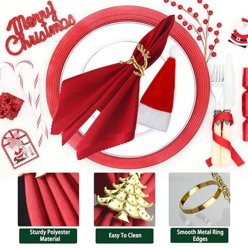 Menu 1. We require immediate payment. 2. We currently accept payment via eBay managed payments only. 3. Once payment is cleared, we will dispatch your shipment within 1-3 business days. Please refer to the "Shipping" tab for more information regarding shipping speed to your destination. 24 Pcs Christmas Napkin Rings Cloth Set, Includes 8 pcs Gold Napkin Rings, 8 pcs Cloth Napkins, 8 pcs Christmas Santa Hats Silverware Holders for Party Decoration, Dinning Table, Holiday, Wedding Product description ✔What You Get - You will receive set of 8 napkins rings with 2 different styles, 4 christmas tree napkin rings, 4 christmas deer napkin rings, 4 red napkins and 4 green napkins, 8 pcs christmas santa hats Silverware Holders. Sufficient quantity and diverse christmas patterns can meet your different needs and enrich your decoration for festive atmosp. ✔Sturdy Napkin Rings - These napkin rings set are made out of metal and rhinestones; it is tough and not easily deformed. Each christmas napkin holder is colorfast and the surface is easily cleaned with a damp sponge or towel, allowing the napkin ring to be used multiple times.Refresh your holiday table with our gold napkin rings and bring a real Christmas together. ✔Fits Most Table Napkins - The napkin rings set is 2.2-2.3" in diameter. Beautiful christmas napkin rings are reusable, have a sophisticated look that never goes out of style, and are sized to fit most napkins. You can match the napkin rings with any color of napkins to give the table a christmas vibe. When the dinner is over, you can clean it and save it for the next time using. ✔Restaurant Christmas Table Decorations - Use our christmas napkin buckles and holders to transform the table into your home. This holiday-themed decor adds a welcoming vibe to any dining space. Get instant festive cheer when you see our beautiful napkin rings on the table.Dress up your dinner table with our diamond napkins rings.Your dining table looks more upscale and beautiful. ✔Christmas Idea Gift - Our napkin rings for table decoration are cute. Christmas napkin rings are ideal gifts for parties, weddings, picnics, festivals, Christmas, New Years, Thanksgiving, receptions and more. Our crystal rings and napkins are gifts you can give to your parents or friends on Thanksgiving or Father's Day and Mother's Day etc. PLEASE MESSAGE US IF YOU HAVE ANY OTHER QUESTIONS, AND MANY THANKS FOR READING ALL OF THIS. Copyright ©#. All Rights Reserved.