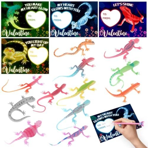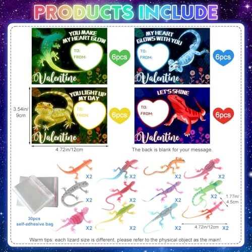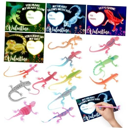 Return Policy Fast Delivery Trusted seller 24 Pcs Pcs Valentine's Day Cards with Glow in Dark Lizards and Clear Gift Bags, Fake Lizards Valentine's Day School Exchange Gifts, School Game Party Favors Set Classroom Prizes Campaign Gifts Product Description Package Includes - You will receive 24 Glow in Dark Lizards, 24 Valentine's Day Cards, and 24 clear self-adhesive bags. The cards have 4 colors and 4 designs, each with a featured Valentine themed design. Glow in Dark Lizards - 24 pcs fake dinosaur models in 12 different styles and can glow in the dark once they absorb enough light, and most of all lots of fun and they will be a nice thing to play with. Valentine's Cards - 24 pcs gift cards in 4 styles, are printed with a fun Valentine's Day text, and the clear bags are self-adhesive, to make them a cool Valentine's Day gift. Class Gifts - These 24 sets of party favors gifts are one-of-a-kind Valentine's Day gifts for friends and classmates, and they make great school exchange gifts and classroom prizes. Exchange Gift Stuffes- This is a cute Valentine's Day gift option for kids to play with, perfect for kids to hand out to their class, or for kids to exchange gifts at Valentine's Day parties favors, or any event. Shipping Returns Payment Shipping Shipping is FREE to all addresses other than APO/PO boxes in the lower 48 states. All our stock ships from US-based warehouses. Shipped via USPS or UPS (depending on location and package weight) Unless stated otherwise, all orders will ship within 24-72 hours of your payment being processed. Check our feedback to see the great reviews of FAST shipping we offer. Returns Seller does not accept returns Payment We currently accept payment via eBay managed payments only. Once payment is cleared, we will dispatch your shipment within 1-3 business days. Please refer to the "Shipping" tab for more information regarding shipping speed to your destination.