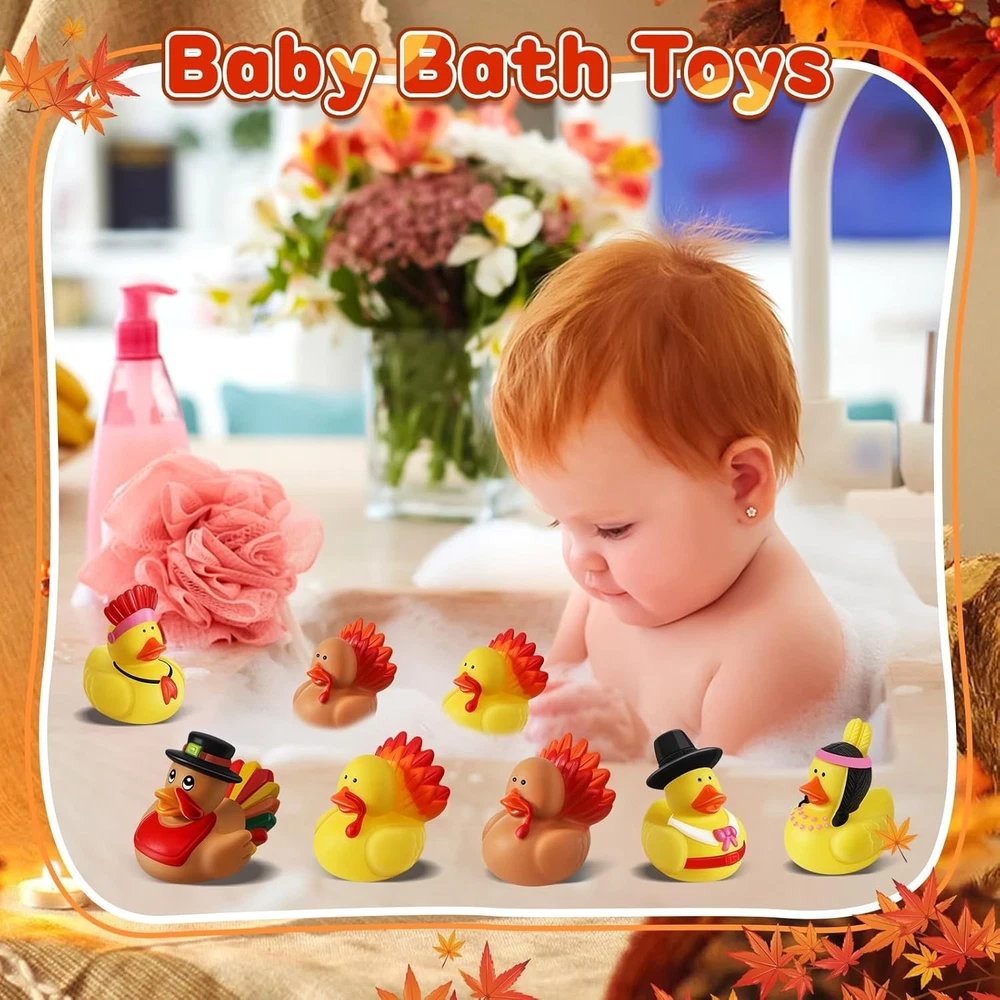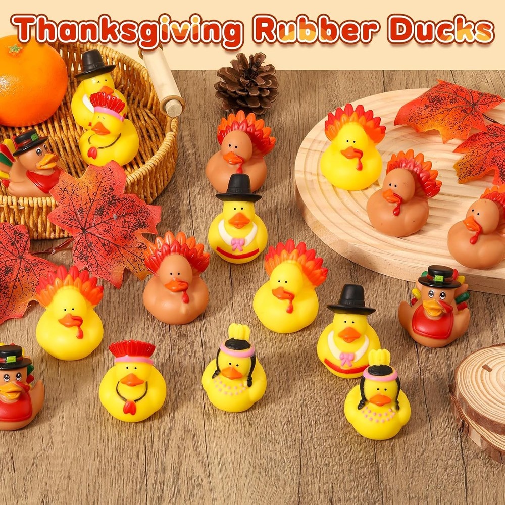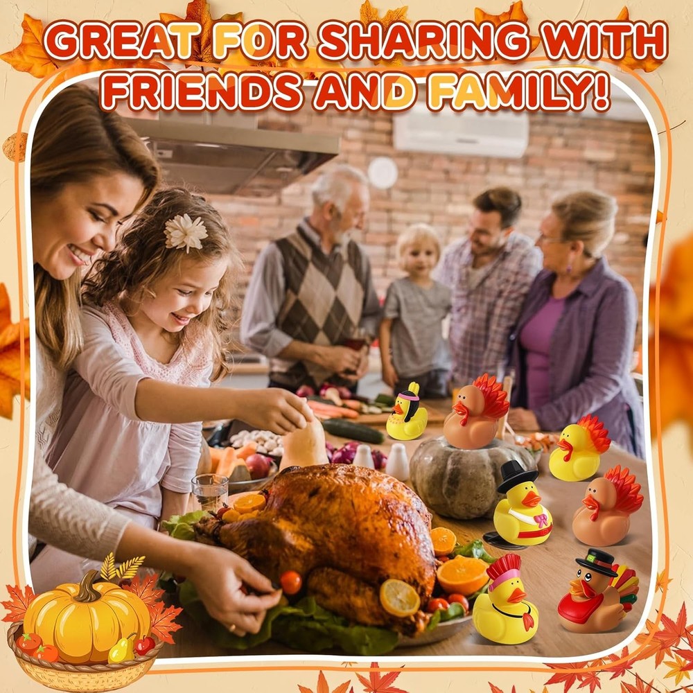 Free eBay listing template designed by dewiso.com 24 Pcs Thanksgiving Rubber Ducks, Thanksgiving Themed Ducks Bulk Turkey Ducks, Thanksgiving Party Favors Supplies for Kids Adults, Fall Duck Bathtub Bathing Toy for Holiday Autumn Table Centerpiece FREE AND FAST SHIPPING! Assortment Thanksgiving Design: Our Thanksgiving ducks feature 6 different styles inspired by Thanksgiving and harvest elements. There are Pilgrim Duck, Native American duck, Turkey duck in the Thanksgiving Rubber Ducks Set. These rubber ducks have an attractive appearance and capture the essence of the holiday season Super Value Thanksgiving Ducks Set: The Thanksgiving rubber ducks kit comes with 24 pieces, providing an ample supply for various purposes. The colors are predominantly yellow, a warm tone that complements the season's vitality. Their elegant and distinct styling will definitely leave an impression. The abundance of these rubber ducks caters to your every need Endless Fun: Our rubber ducks bath toy is exquisite and cute. Add these ducks to your bathtub and watch them float around. Make your kids' bath fun and interesting with these Thanksgiving bath toys. These rubber ducks are great for cruise ships. You can also put these Thanksgiving ducks in your car, in your community, or on a cruise ship to spread happiness Ideal Gifts: These fall rubber ducks are suitable for Thanksgiving celebrations, party favors, bathtub decorations, cake decorations, school prizes, families, relatives, roommate gifts, and Thanksgiving Day exchanges, Birthday Gifts, or even educational tools in classrooms. Our rubber ducks add a charming touch to any occasion. The gift receivers will surely cherish these cute and serviceable toys, adding fun to their Thanksgiving Safe Material: Thanksgiving rubber ducks are made of high-quality rubber and measure about 2 inches. This size is easy to grasp for both adults and children. Our ducks are great baby bath toys. It's reliable and also easy to clean, paired with orange, and yellow colors, hard to fade. Smooth and soft surface allows you to play with them casually Product We offer a 30-Day Return Policy on items which you are not completely satisfied with. You have the option for a full-refund or an exchange of the item. No returns are available on items shipped outside of the US . Shipping We offer Free Shipping to the US and ship within 2 business days of payment, usually sooner. We use UPS express shipping. That's why your products are usually delivered within 3 days . Contact We try our very best to make sure every customer is completely satisfied. If there's a problem , message us! We're happy to help. 24/7 live chat available.
