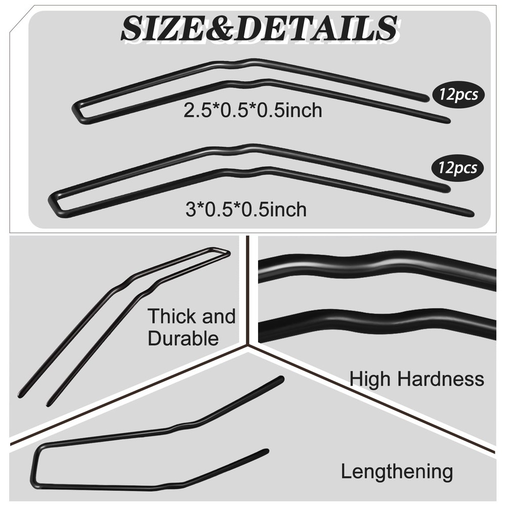Features: Equip with a box: The U bobby pins are placed in a box and that helps keep the U pins away from dust and water, prolong the using time, and makes it convenient for you to and carry. You can put it in your pocket or purse, whenever and wherever you need to apply the U pins, just take them out from the box. Express your care: The hair pins for thin hair are simple in color and style, girls who pursue simple features may like them. You can give the pins to your girlfriends, wives or friends to express your love, they will feel your care and that helps increase your intimacy. Specifications: Material: spring steel Color: black Size: 2.5 inches, 3 inches Package includes: 24 x U bobby pins Notes: Manual measurement, please allow slight errors on size. The color may exist slight difference due to different screen displays. Package includes: 24 Pieces of black ballet hairpins, sufficient quantity is convenient for your different needs, you can match different hair styles according to your preferences, make hair styles more delicate and firm Reliable material: the hair updo pin is made of spring steel, which has better elasticity and makes it simple to use; The surface is smooth and the U hairpins won't fade easily, you can apply them with confidence Reassuring Using Experience: the hair forks for buns can hold your hair tightly without being noticed, they are sturdy enough yet won't hurt your scalp; The U pins are easy to apply, you will get a beautiful hairstyle just within a few seconds, save your time a lot Wide Applicable Occasions: these hair forks for thick hair are not only suitable for daily wearing but also appropriate for dances, parties, dates, weddings and other places, the bobby pins will match most hairstyles and social occasions well Match with other hair decorations: these U shaped hair pins are simple in style, help you make clean hairstyles, you can also match them with hair accessories of various styles and colors to make you more lively