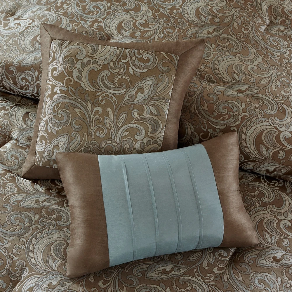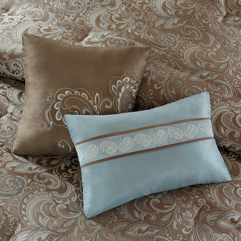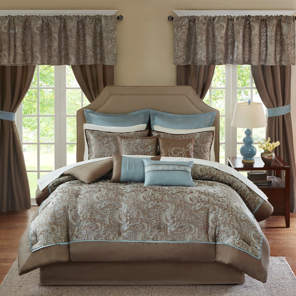 Fill Material: 100% Polyester Set Includes: Bed Skirt, Curtains, Decorative Pillow, Duvet Cover, Fitted Sheet, Flat Sheet, Pillowcase Care Instructions: Easy Care, Machine Wash Model: 908253 Room: Bedroom Material: Microfiber Style: Modern Size: Queen Features: Machine Washable Theme: paisley UPC: 764475908253 Shape: Square Color: Blue gtin13: 764475908253 Product Line: Cadence Department: Teens, Adult MPN: 908253 Drop Length: 15 in Item Length: 90 in Brand: Madison PARK Type: Bed-in-a-Bag Insulation: Warm Item Width: 90 min Number of Items in Set: 24 piece Pattern: Paisley