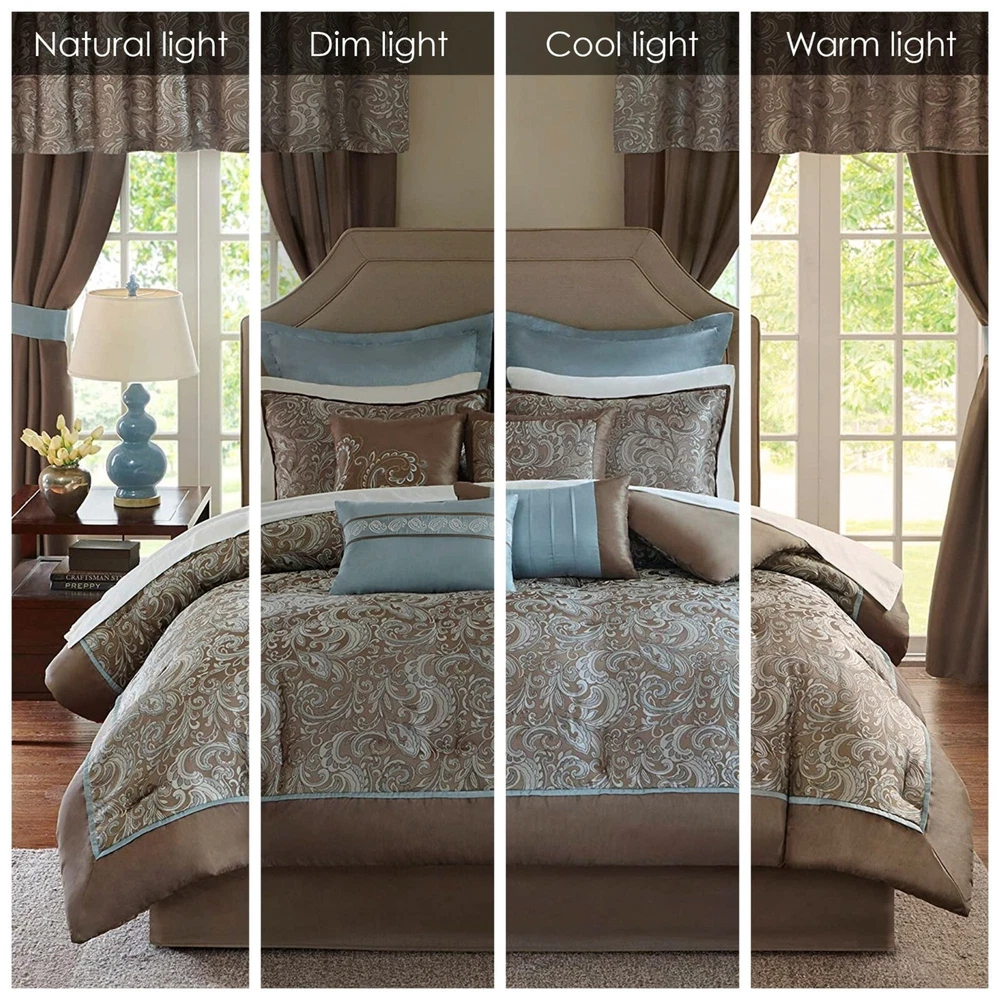 24 Piece Room In A Bag Queen Bedding Set Comforter Bed Sheets Curtains L Blue