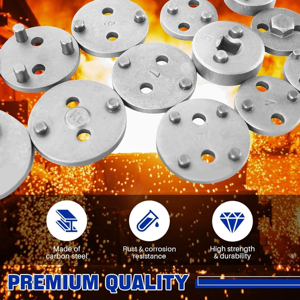 Kit 24 Piezas para Frenos - Compresor de Pistones y Herramientas Profesionales" 🚗 Descripción: "¿Necesitas hacer mantenimiento a tus frenos? Este kit profesional de 24 piezas incluye todo lo necesario para comprimir pistones de caliper y cambiar pastillas: ✔ Contenido premium 18 adaptadores universales 2 placas retenedoras magnéticas Tornillos de empuje (izq/der) Guantes y maletín organizador ✔ Beneficios clave ✅ Acero al carbono 45# antióxido ✅ Diseño magnético para mayor seguridad ✅ Compatible con autos europeos, asiáticos y americanos ✅ Incluye manual de uso ilustrado ⚠ Importante: Ideal para mecánicos y talleres. ¡Facilita el mantenimiento de frenos!" ⚙️ Puntos Clave (Bullet Points): 🔹 Material profesional - Acero endurecido para uso intensivo 🔹 Seguridad mejorada - Imanes evitan desprendimientos 🔹 Uso versátil - Para discos de diferentes marcas y modelos 🔹 Organización - Maletín resistente para guardado 🔎 Palabras Clave para Búsqueda: "kit compresor pistones frenos," "herramientas para calipers," "juego 24 piezas frenos," "adaptadores universales," "mantenimiento discos freno"