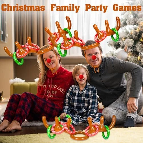 30 Days Return Policy Fast Delivery Trusted seller 2-4 Players Inflatable Reindeer Antler Ring Toss Game for Christmas Party - Game Rules Included (2 Antlers 10 Rings) Product Description UPDATED VALUABLE REINDEER RING TOSS GAME: 6 ring toss point( 2 more ring toss point than the old one) Package included: 2 Inflatable Reindeer Antler Hats; 6 Red Large Inflatable Rings; 4 Green Inflatable Rings. LARGE SIZE FOR FUN: Reindeer Antler Hats are 32.5 x 13.7 x 9.4 inches. Large Rings are 7.5”.(Inflated Size) ONE SIZE FIT ALL:Each Reindeer Antler Hat with Chin Strap, easy to wear. WONDERFUL PARTY GAME: Perfect for Christmas Holiday Party Favors, School Day, Indoor and Outdoor Toss gaming. Share this fun winter with your family and friends. DURABLE USING & EASY STORAGE: Updated durable inflatable port; 11.5 x 8 x 2.5 inches when deflated, easy to inflate and deflate. Shipping Returns Payment Shipping Shipping is FREE to all addresses other than APO/PO boxes in the lower 48 states. All our stock ships from US-based warehouses. Shipped via USPS or UPS (depending on location and package weight) Unless stated otherwise, all orders will ship within 24-72 hours of your payment being processed. Check our feedback to see the great reviews of FAST shipping we offer. Returns As our valued customer, we will do our best to make sure the product you receive arrives to you on time and as expected. If you are not satisfied with your purchase, please contact us within 30 days of receiving your order to process a return. Payment We currently accept payment via eBay managed payments only. Once payment is cleared, we will dispatch your shipment within 1-3 business days. Please refer to the "Shipping" tab for more information regarding shipping speed to your destination.