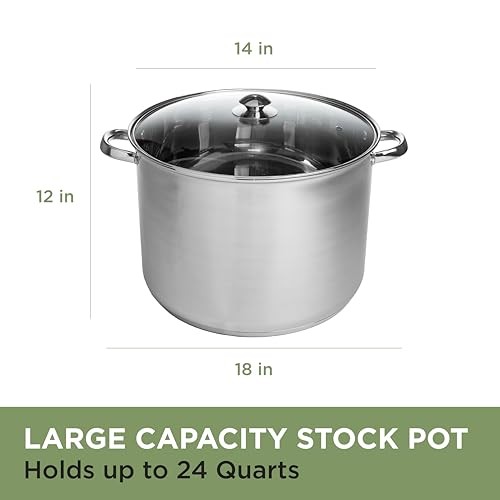 Return Policy Fast Delivery Trusted seller Stainless Steel Stock Pot, Encapsulated Induction Ready Cooking Pot with Glass Lid, Oven Safe, Dishwasher Safe Soup Pot, 24-Quart Product Description SUPERIOR PERFORMANCE: Crafted from premium stainless steel for long-lasting performance and durability. The encapsulated base delivers fast and even heat conductivity for exceptional cooking results. PERFECT SIZE: Slow cook, simmer, boil and braise with ease. This 24-quart stock pot is perfect for preparing pasta, soups, stews and much more. Perfect for large crowds or meal prep. COMFORT GRIP HANDLES: Sturdy riveted stainless steel handles allow for safe and easy maneuvering around the kitchen. The see-through lid is tempered and vented allowing you to monitor food as it cooks. ALL COOKTOP AND OVEN SAFE: Compatible with all stove tops including induction. Oven-safe up to 350 degrees Fahrenheit. DISHWASHER SAFE: The entire collection is dishwasher safe for fast and easy clean-up however we do recommend hand washing to preserve the stainless steel finish. Shipping Returns Payment Shipping Shipping is FREE to all addresses other than APO/PO boxes in the lower 48 states. All our stock ships from US-based warehouses. Shipped via USPS or UPS (depending on location and package weight) Unless stated otherwise, all orders will ship within 24-72 hours of your payment being processed. Check our feedback to see the great reviews of FAST shipping we offer. Returns Seller does not accept returns Payment We currently accept payment via eBay managed payments only. Once payment is cleared, we will dispatch your shipment within 1-3 business days. Please refer to the "Shipping" tab for more information regarding shipping speed to your destination.
