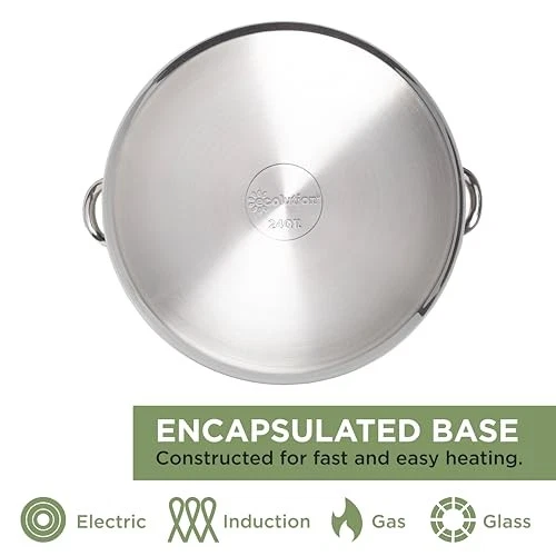 This stainless steel stock pot is a game-changer in the kitchen! The encapsulated base heats up quickly and evenly, making it perfect for soups, stews, and pasta. The glass lid lets me monitor cooking without lifting it, and the sturdy construction feels built to last. Plus, it works on my induction stove and cleans up easily in the dishwasher. Highly recommend for anyone who loves to cook in big batches!