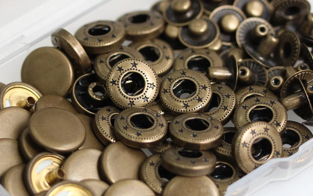 Specification: Item: Leather Snap Fasteners Kit Quantity: 24sets Material: Brass Diameter: 15mm Color: Antique Brass Features: 1. Beautiful color and pattern, it will be a great decoration of you clothes 2. Used for leather craft, clothing, handbags, leather straps, DIY Craft etc 3. Our leather snap fasteners are made of durable and sturdy brass material, will not rust and can be used for a long time 4. Our metal snap fasteners have high gloss, smooth surface and no burrs to the touch, looks very classy and elegant Package included: 24sets x Leather Snap Fasteners Kit 4pcs x Installation Tools 1pcs x plastic storage 【Leather Snaps Color】 Antique Brass 【Item Size】 The diameter of the cap is about 15 mm/0.59 inch 【Premium Material】 The Leather Snap Fasteners are made of Brass, non-rusting, remains like new even after long time use 【Enough Quantity】 Come with 24 sets complete heavy duty snaps with 4 setter tools in a box storage. Each set are made of cap, socket, close post and stud 【Widely Application】 The leather fasteners can meet your various leather decorative demands or clothing repair supplies, such as jackets, jeans, belts, hats, pet clothes, bags, DIY craft decoration