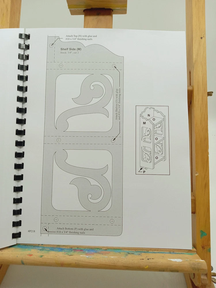 24 FULL SIZE SHELF PROJECT PATTERNS for WOODWORKERS & SCROLLSAWYERS. These shelves sell like crazy at arts and crafts show! See Photos for more detail This book is a must-have for anyone interested in mastering the art of MAKING WOODEN TOSYS Topics include - Tips & Techniques - Hardwoods Vs. Plywoods - Sanding - Using Patterns - Repositional Spray Adhesive - Drilling Started Holes - Stack Cutting - Sawing Thin Woods -Veining - Auxiliary Tables - Finishing Techniques. Each project includes bill of materials, cutting sizes, instructions, and full size patterns. The book features loose-leaf pages, measuring 8.5 x 11 inches and laid flat with a comb bind. The patterns are in English and International Copyrights held by SRX Enterprise LLC. The book is a first edition published in 2022 by SRX Enterprises, LLC. All Rights Reserved. Rick Longabaugh illustrated the patterns, making it easy to follow along and create stunning projects