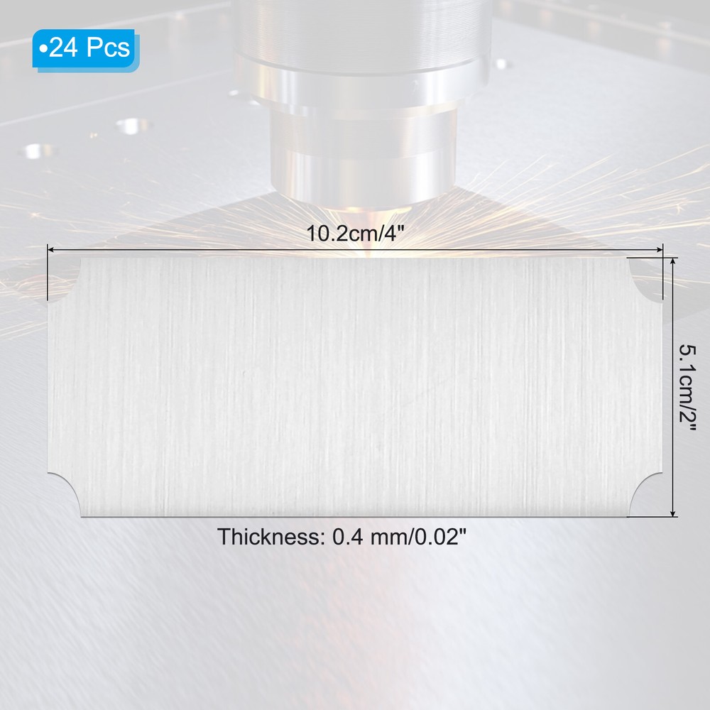 Document Our engraved nameplates are perfect for mounting on plaques, picture frames, sweaters, trophies, bags, display boxes, flag cases, and anything else.SpecificationMaterial: Stainless SteelColor: Silver ToneSize: 10.2 x 5.1 cm/4 x 2 Inch(L*W)Thickness: 0.4 mm/0.02 InchPacking List: 24 Pcs x Engraved NameplateAdvantageOur engraved nameplates are made of brushed stainless steel which is durable, stable, not easy to fade, rust, or break, and can be used for a long time. With a smooth surface, it will not scratch your skin.The right thickness makes the plate stronger and allows for deeper engraving. These elegant nameplates have a beautiful luster and a simple design. Suitable for various crafts to add brilliance.The protective film design can effectively prevent scratches. The adhesive backing design allows you to stick this nameplate anywhere without any tools and it can be firmly on the objects.InstructionPlace a metal workbench block underneath the blank stamping tags for better stamping.NOTE:1. There may be light scratches and blemishes due to shipping, but they can be polished.2. Only for laser engraving, not suitable for mechanical engraving.3. Please remove the protective film before use. 24 Pcs 4" x 2" Engraved Name Plate Picture Frame Label Art Tag, SiLver Tone Our engraved nameplates are perfect for mounting on plaques, picture frames, sweaters, trophies, bags, display boxes, flag cases, and anything else. Specification Material: Stainless Steel Color: Silver Tone Size: 10.2 x 5.1 cm/4 x 2 Inch(L*W) Thickness: 0.4 mm/0.02 Inch Packing List: 24 Pcs x Engraved Nameplate Advantage Our engraved nameplates are made of brushed stainless steel which is durable, stable, not easy to fade, rust, or break, and can be used for a long time. With a smooth surface, it will not scratch your skin. The right thickness makes the plate stronger and allows for deeper engraving. These elegant nameplates have a beautiful luster and a simple design. Suitable for various crafts to add brilliance. The protective film design can effectively prevent scratches. The adhesive backing design allows you to stick this nameplate anywhere without any tools and it can be firmly on the objects. Instruction Place a metal workbench block underneath the blank stamping tags for better stamping. NOTE: 1. There may be light scratches and blemishes due to shipping, but they can be polished. 2. Only for laser engraving, not suitable for mechanical engraving. 3. Please remove the protective film before use. Hot Item Payment 1.We accept eBay payment . 2.Payment must be received within 7 business days of auction closing. Shipping 1.We ship to your eBay or Paypal address. Please make sure your eBay and Paypal address is correct before you pay. 2.Items will be shipped within 1-3 business day when we received payment. 3.Delivery time depends on destination and other factors. Description Policy 24 Pcs 4" x 2" Engraved Name Plate Picture Frame Label Art Tag, SiLver Tone Our engraved nameplates are perfect for mounting on plaques, picture frames, sweaters, trophies, bags, display boxes, flag cases, and anything else. Specification Material: Stainless Steel Color: Silver Tone Size: 10.2 x 5.1 cm/4 x 2 Inch(L*W) Thickness: 0.4 mm/0.02 Inch Packing List: 24 Pcs x Engraved Nameplate Advantage Our engraved nameplates are made of brushed stainless steel which is durable, stable, not easy to fade, rust, or break, and can be used for a long time. With a smooth surface, it will not scratch your skin. The right thickness makes the plate stronger and allows for deeper engraving. These elegant nameplates have a beautiful luster and a simple design. Suitable for various crafts to add brilliance. The protective film design can effectively prevent scratches. The adhesive backing design allows you to stick this nameplate anywhere without any tools and it can be firmly on the objects. Instruction Place a metal workbench block underneath the blank stamping tags for better stamping. NOTE: 1. There may be light scratches and blemishes due to shipping, but they can be polished. 2. Only for laser engraving, not suitable for mechanical engraving. 3. Please remove the protective film before use. Hot Item Payment 1.We accept eBay payment . 2.Payment must be received within 7 business days of auction closing. Shipping 1.We ship to your eBay or Paypal address. Please make sure your eBay and Paypal address is correct before you pay. 2.Items will be shipped within 1-3 business day when we received payment. 3.Delivery time depends on destination and other factors.