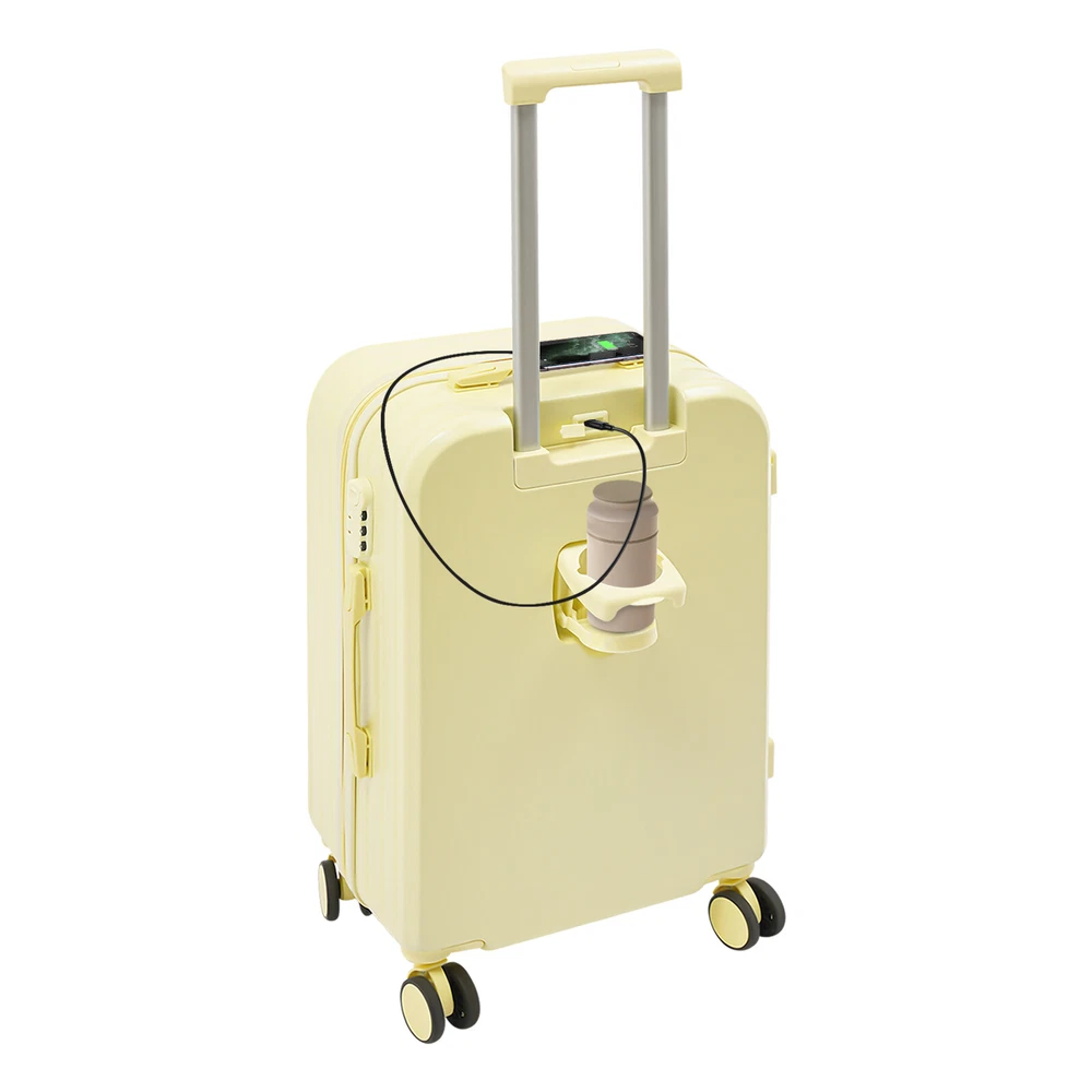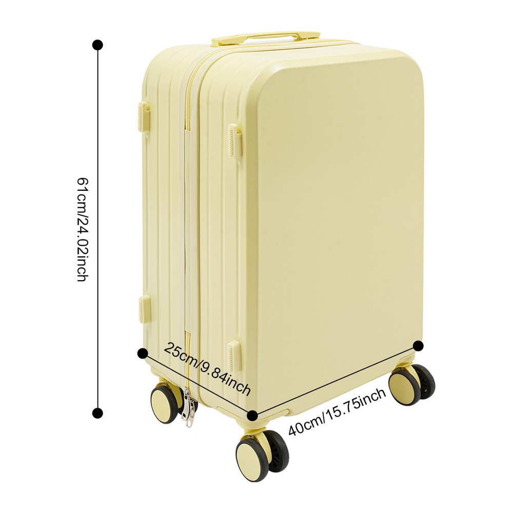 Specifications Material: ABS, PVC, Rubber Color: Light Yellow Shape: Rectangular Style: Modern Assembly Required: No Mount Type: Freestanding Initial Password: 000 Wheel Type: 4 * Universal Wheels Pull Rod Gears: 1 Load Capacity: About 45kg/99.21lbs Gross Weight: 4.1kg/9.02lbs Net Weight: 3.9kg/8.58lbs Product Size: 40*25*61cm/15.75*9.84*24.02in Package Size: 65*41*27cm/25.59*16.14*10.63in Package Included 1* 24" Travel Luggage Suitcase 24" Travel Luggage Suitcase, Travel Luggage Suitcase, Light Yellow Description Our 24" travel luggage suitcase is designed specifically for modern travelers, with side hooks, a USB interface, a cup holder, and a password lock that combine convenience, security, and technological elements, making it the ideal companion for your short-term business or leisure trip. Have it now, make every trip a joyful exploration journey! Key Features Premium Material: This product is made of premium PVC, rubber, and ABS materials that are lightweight, durable, impact-resistant, and wear-resistant , ensuring a long service life. Large Capacity: It features a large-capacity design with a spacious interior that can easily accommodate multi-day travel clothing, toiletries and carry-on items (not included) to meet the storage needs of long-distance travel or business trips. Flexible Movement: Four easy-to-move universal rubber wheels, a telescopic rod, and a top handle make it easy to get the case up and down stairs, in and out of the car, and in the lift. High Load Capacity : The rectangular construction and premium materials give this product a load-bearing capacity of approximately 99.21 lbs, giving you peace of mind. High Security: It uses a 3-digit password lock, making it anti-theft , allowing you to safely put valuable items inside. Easy to Clean: A simple construction and smooth surface make this product easy to clean, you just need a towel (not included) and water to easily remove dust and residue. Ideal Gift: Its classic design and large capacity make this product a great gift to your family, friends, and loved ones. Buy with Confidence: We stand behind all our guests and look forward to assisting you with your purchase. It is our pleasure to answer your confusion and questions. The end of the story between us is not "we sell and you buy". Details Durable Zippers: They allow for smooth and easy opening and closing of the case, bringing more convenience. Side Hooks: They can be used to hang small carry-on bags, umbrellas or clothing for easy access, saving space and enhancing travel convenience. Cup Holder: It is convenient for you to place drinks while waiting or resting, keeping your hands free and facilitating easy access . USB Port: It is designed with a USB charging port, which is convenient for charging electronic devices at any time. Application This product can be widely used in short-distance domestic and international tourism, business trips, vacations, exchange visits, academic conferences, and other occasions, which is suitable for most people such as students, business people, and tourists. Specifications Material: ABS, PVC, Rubber Color: Light Yellow Shape: Rectangular Style: Modern Assembly Required: No Mount Type: Freestanding Initial Password: 000 Wheel Type: 4 * Universal Wheels Pull Rod Gears: 1 Load Capacity: About 45kg/99.21lbs Gross Weight: 4.1kg/9.02lbs Net Weight: 3.9kg/8.58lbs Product Size: 40*25*61cm/15.75*9.84*24.02in Package Size: 65*41*27cm/25.59*16.14*10.63in Package Included 1* 24" Travel Luggage Suitcase Notes Please carefully check if the size is suitable before placing an order. Please use the product within its weight capacity to avoid damage. The USB port does not charge on its own, you need to supply a power bank (not included). Please allow the slight color difference caused by the shooting light and 1-3cm error due to manual measurement, and make sure you do not mind before you order. Payment Delivery details Terms of sales About us Contact us Payment We accept ebay payment 。 Fees such as import duties, taxes are not included in the item price or shipping costs. These charges are the buyer's responsibility. Delivery details Shipping: 2-9 working days to: USA Terms of sales We maintain high standards of excellence and strive for hundred percent customer satisfaction. Feedback is very important to us. We hope that you contact us immediately before you give neutral or negative feedback, so that we can address your concerns. It is impossible to address issues if we do not know about them! About us Your satis faction is our ultimate goal. We work hard to earn your trust and future business. Our certified technicians have tested each item before shipping. The unit comes with 1 year limited warranty on all manufacturing defects. a) If you receive a defective item, you may return it or ask for a discount. Please contact us within 14 days after you receive the package. b) What you returned must be intact and in its original packaging as re? u. Customer is responsible for shipping costs of the returned item. c) We will cover the cost of shipping back t with the shipping rate indicated in the registration page. We will send you a new unit or refund the full payment you paid. Thank you. Contact us Business Hour Business Hour: Monday To Friday: 8:30 AM to 5:00 PM (Beijing China time) Due to time zones, our reply to your questions may not be immediately. But within above working time, we will reply your email within 24 hours. If it's non-workdays, please kindly be patient and wait till Monday. Please contact us with ebay message. Please feel free to contact us if you have any questions. Monday To Friday: 8:30 AM to 5:00 PM (Beijing China time) Due to time zones, our reply to your questions may not be immediately. But within above working time, we will reply your email within 24 hours. If it's non-workdays, please kindly be patient and wait till Monday. Please contact us with ebay message. Please feel free to contact us if you have any questi
