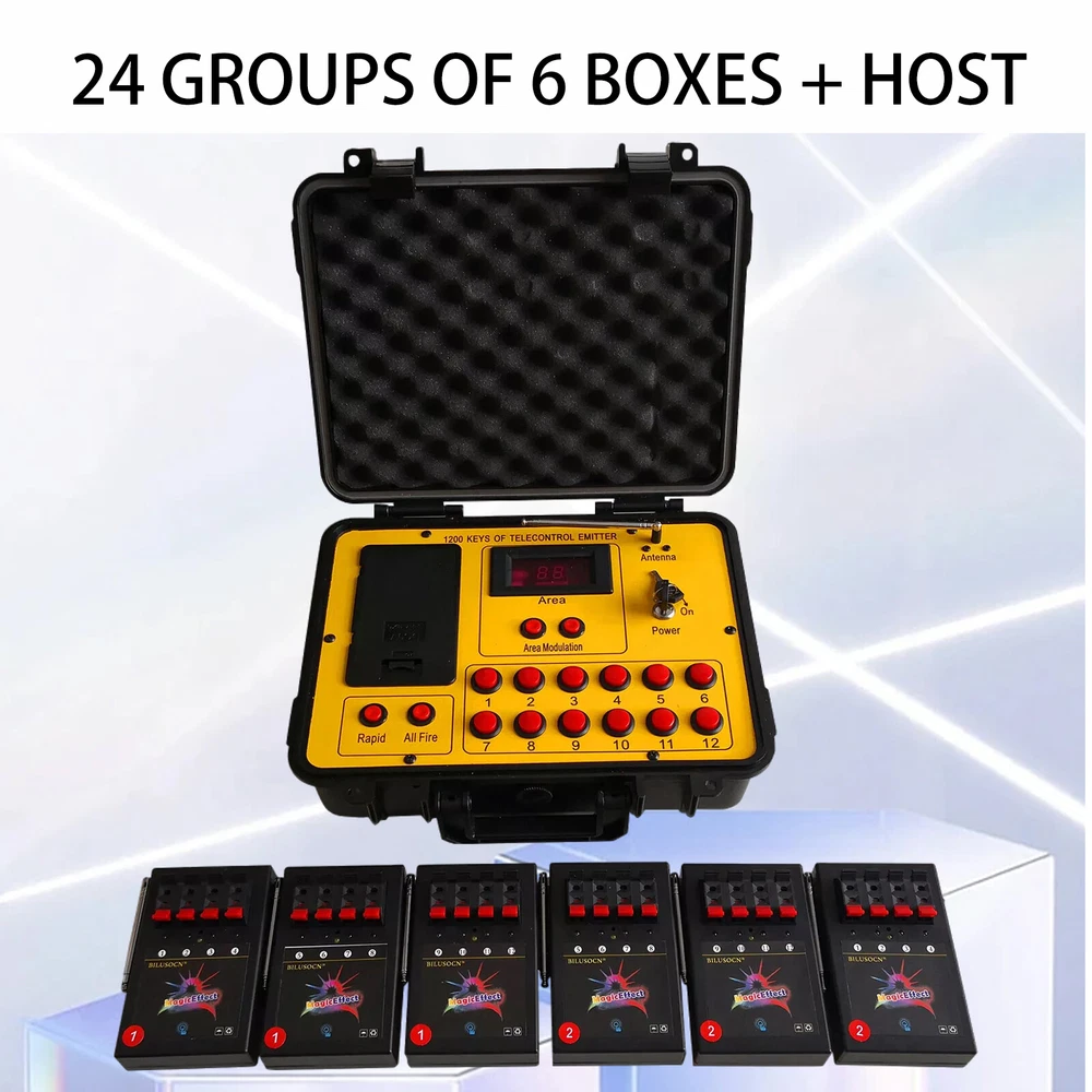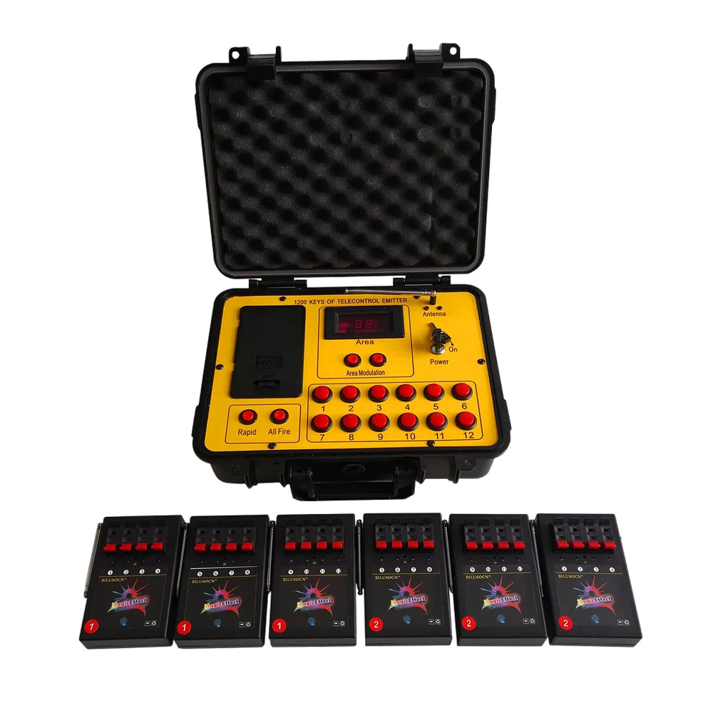 Product Description Long distance control 24 cues Wireless Fireworks Firing system,1200-Channel Remote Telecontrol, Come with Package Case Electronic Remote control Programmable Firing Equipment Waterproof Thank you for purchasing our 24 channel remote firing system. We are sorry we could not include batteries but this is not allowed when shipping by air freight. However, we are sure you will appreciate the value of our product. Your purchase includes 6 receivers and one transmitter to give you a total or 24 channels. Power: Receiver: 4 AA batteries Transmitter: 6pcs battery Range: 300meters (984 feet) The receivers are very economical. They can be used independently. If one fails, the others will continue to operate. This system is expandable. Simply purchase more receivers from the website below. The receivers come pre-programed for your convenience however they are reprogrammable. Locate a small hole in the center of the receiver and insert a paperclip or similar object. The receiver will flash then press a corresponding key on the remote. Now the receiver has been paired with the remote. Caution! 1. Handle your product with care avoid shaking and dropping it. 2. Keep the receiver as far away from your fireworks as possible to avoid damage. 3. Remove batteries before storage. 4. Store your product in a clean dry area away from containments. Frequency 433MHz This device complies with part 15 of the FCC Rules. Operation is subject to the following two conditions: (1) This device may not cause harmful interference, and (2) this device must accept any interference received, including interference that may cause undesired operation. Payment: The buyer is responsible for any applicable import duties and local taxes. Usually there's not any charges for small parcel. But please verify with your customs before making your purchase. Return: If you are not completely satisfied with your purchase, simply return the item to us in its original condition within 14 days of receipt. We will issue a full refund on receipt, excluding the return delivery charge. About US: We are a professional foreign trade e-commerce company, mainly engaged in foreign trade B2C platform business. Our foucs includes instrument meters and accessories, household items, car accessories, Led lighting etc. Our company is energetic and creative and wish to bring you great service and amazing experience.