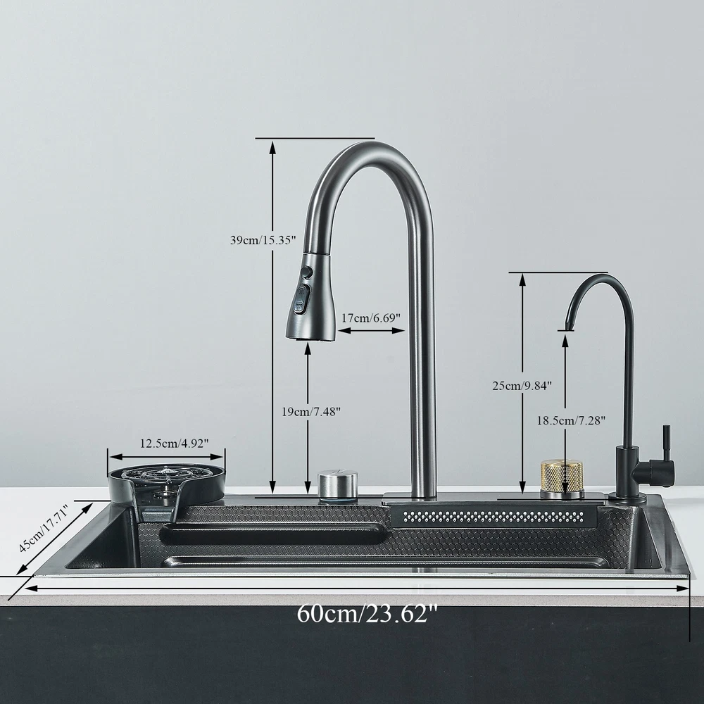 Store Categories Store Categories China Warehouse Shipment CN-Accessories CN-Basin Faucet CN-Bathtub Faucet CN-Kitchen Faucet CN-Shower Faucet CN-Shower Panel CN-Shower Set CN-Shower Head U.S. warehouse shipment Accessories Basin Faucet Bathtub Faucet Kitchen Faucet Shower Faucet Shower Head Shower Panel Shower Set Kitchen Faucet 2 UK warehouse shipment Accessories Basin Taps Bathtub Taps Kitchen Taps Shower Taps Shower Head Shower Panel Shower Set Shipment from German warehouse Other Product Certification Details Function: Kitchen sink with Kitchen Sink Faucet Feature: Pull Down faucet Finish: Matte Gray Sink Length: 600 mm Sink width: 450 mm Sink height: 210 mm Faucet Body Material: Stainless steel Faucet Spout Material: ABS Plastics Sink Material: 201 Stainless steel Shipment & conditions Payment Method Contact us Feedback Shipment & conditions Usually shipment can be arranged within 2working days after receiving payment. Each item can be shipped out if payment received before 17:00 each day. We usually ship via Fedex , UPS, USPS. We have warehouses in many locations in the United States, and will use the warehouse closest to you for shipment. We ship to the address in the order.Therefore, please make sure that the address you fill in when purchasing is correct. After the product ships, the estimated delivery time in the order is the best-case scenario. We cannot guarantee delivery within the estimated delivery time. Because logistics and transportation have great uncertainty. The buyer is responsible for returning the product if it is not a quality problem. Payment Method Paypal, Google Pay, VISA, AMEX, etc. Contact us Shipping damage has to be reported within 5 business days of which the product was delivered. If you have any questions, please be free to contact with us,we will answer your questions ASAP. We will answer your question via email, please check your email for the answers. Feedback I describe items as well as I can. If I have missed something, please let me know. Please e-mail me before leaving feedback if you are unhappy with your item, so we can work it out. International Buyers – Please Note: Import duties, taxes, and charges are not included in the item price or shipping cost. Urheberrecht©Xifumixertaps