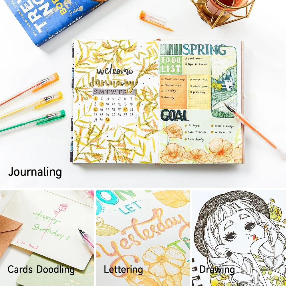 240 Pack Glitter Gel Pens, 120 Colors Glitter Gel Pen Set with 120 Refills for Adult Coloring Books Craft Doodling Description: 240 GLITTER PACK: Shuttle Art 120 Colors Glitter Gel Pens contains 120 INDIVIDUAL glitter + neon glitter colors, plus 120 matched refills. Enjoy the fun of coloring! Each pen enjoys a unique color, which brings much more fun for Adult book Coloring, Scrap booking, Sketching, Doodling, Drawing, Writing, and all the other art designs. GLITTER ONLY: All the pens are with glitter powder that meets the special requirement for glitter fans. Makes you lost in the glitter world! NICE PACKING: Convenient and easy taking. SUPERIOR QUALITY: Long lasting, durable tips, smooth writing, non-toxic, acid free. Conforms to ASTM-D4236.