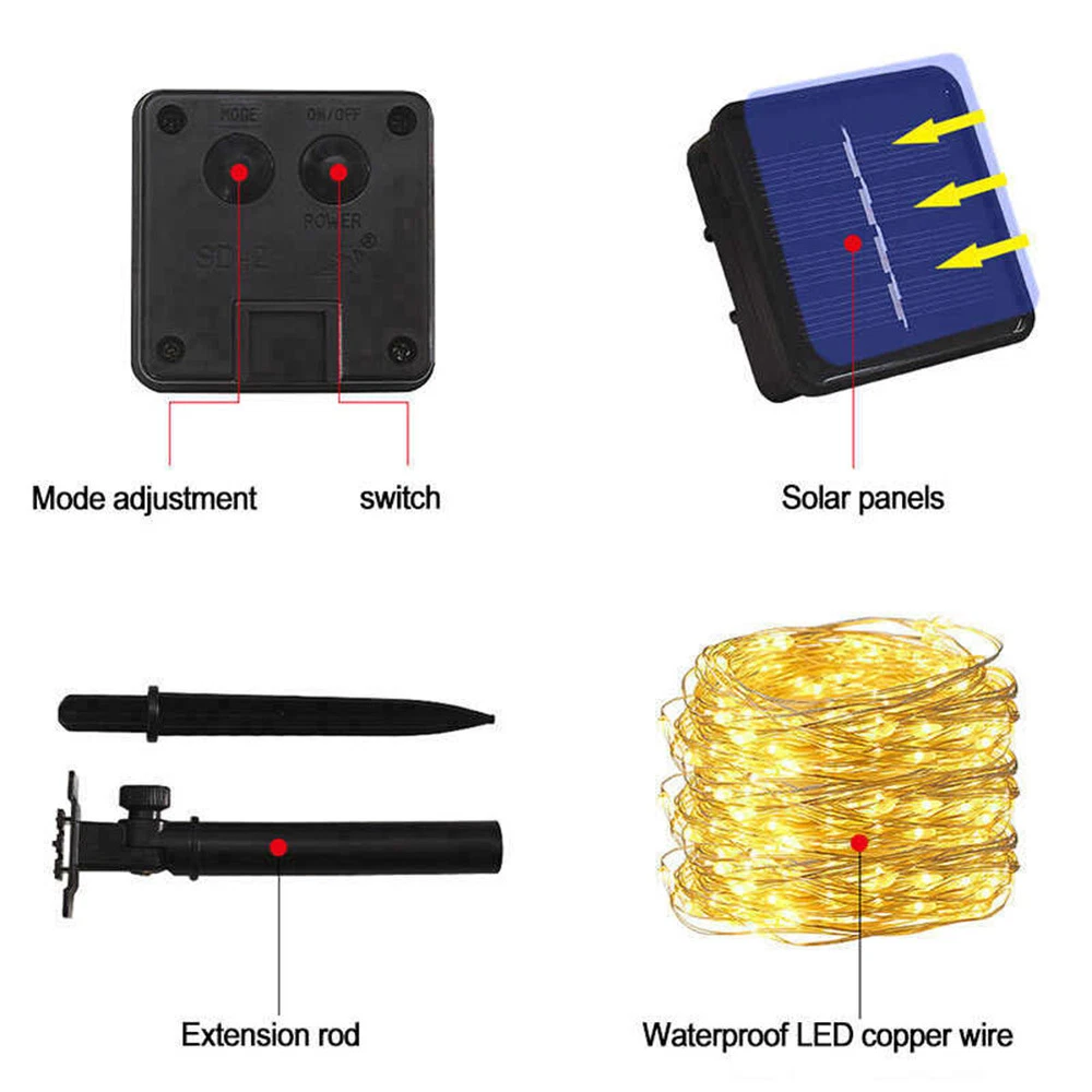 Look , You may also like 8 IN 1 LED Meteor Shower Rain Lights Fairy String Lights Yard Christmas Decor 11.76 USD 13.07 USD Free shipping 10% off LED Window Curtain Snowflake Icicle String Fairy Lights Home Wedding Decoration 13.82 USD 15.35 USD Free shipping 10% off 12V Flexible LED Neon Light Strip Waterproof Atmosphere Light Christmas Decor US 17.63 USD 19.59 USD Free shipping 10% off 300LED String Light Home Decoration Solar String Light Garden Copper Wire Light 12.54 USD 13.93 USD Free shipping 10% off 10/20M Solar Fairy String Lights Garden Party Decor Christmas Tree Lights 8Modes 13.01 USD 14.46 USD Free shipping 10% off Gift LED Solar Fairy String Light Copper Wire Outdoor Waterproof Yard Decor US 7.34 USD 8.15 USD Free shipping 10% off 8PCS Christmas Tree Decor Meteor Shower Rain Lights 72LED Fairy String Lights 13.46 USD 14.96 USD Free shipping 10% off Fairy String Lights Outdoor Solar-powered 8 Lighting Modes Garden Wedding Decor 12.11 USD 13.45 USD Free shipping 10% off 8 IN 1 Upgraded Meteor Lights TubesHome Garden Tree LED Falling Snowfall Lights 13.54 USD 15.04 USD Free shipping 10% off 5M 10M Flexible LED Strip Light Sign Neon Lights Cuttable Silicone Tube Light US 17.71 USD 19.68 USD Free shipping 10% off LED Window Curtain Snowflake Icicle String Fairy Lights Christmas Wedding Decora 12.84 USD 14.27 USD 0.99 USD 10% off LED Strip Lights Flexible Light Strip Color Changing with Remote Christmas Decor 25.33 USD 28.14 USD Free shipping 10% off 240LED Solar Fairy String Lights Garden Wedding Birthday Party LED Light Decor Product Name: string light Description: *1. Capacity: 0.6 W *2. Voltage: 2 V *3. Flux: 200 lm *4. Solar Panel: 1.2 V/150 mA *5. Mode: 8 modes Features: *1. Light and small with high softness, so you can moderately fold it into the shape whatever you want without damaging it. *2. Widely use, decorate your yard, garden, lawn, porch, door, yard, wedding, party, etc. *3. IP65 waterproof grade is perfect for outdoor use. *4. 8 modes: combination, fireflies, waves, fading, chasing, fading slowly, twinkle and steady on; adjustable for your need. *5. Environment-friendly with low voltage, so the item is energy-saving and very safe so as not to worry about the security. *6. Eco-friendly solar-powered outdoor string lights. Tips: 1. Turn on the lights and set your favorite mode, place the panel in the direct sunlight for 6-8 hours, then it will automatically light up at night; 2. Use the "MODE" button to switch lighting modes. Packing List: string light(with solar panel) *1 manual *1