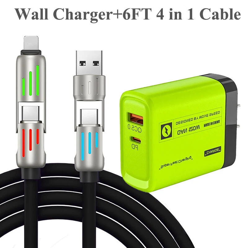 240W Fast Type C Wall Charger & 6FT 4 in 1 Cable For Samsung S24 Ultra S23 S22