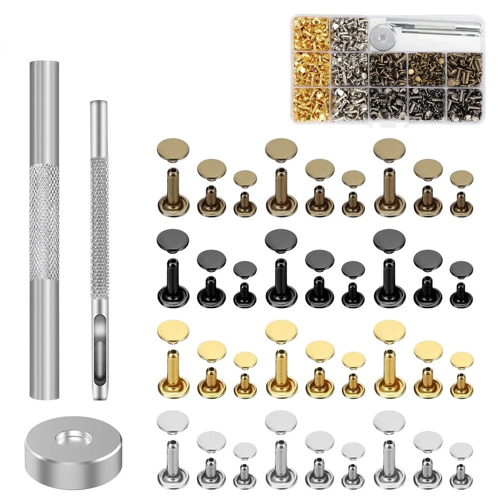 240pcs Double Cap Tubular Rivets for Leather Crafting DIY Metal Studs Accessories