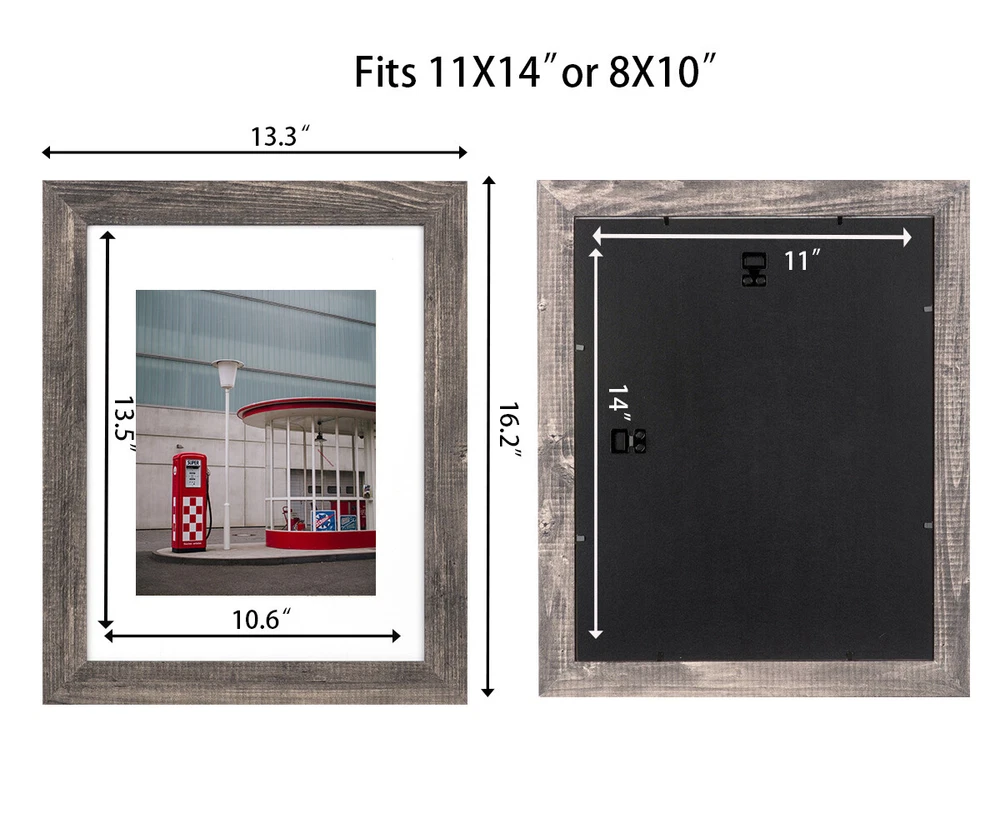 Product Description: ATTRACTIVE DECORATION: These picture frames 11 by 14 not only perfect for standard 11x14 pictures or prints, but also fit for 8x10 with attached mat. They're designed to admire your precious artwork and suitable for creating a more personalized gallery wall. QUICK INSTALLATION: Safety use small buttons and easy-open density board on the back let you load and change your picture quickly and keep it in place. The 11x14 picture frame black brown will add a touch of elegance to wherever they are placed. GREAT GIFT: The 11x14 frame is a nice gift to your loved families, friends, relatives or someone else for Valentines Day, New Year’s Day, Mother’s Day, Father’s Day, Thanksgiving Day, Christmas, Anniversary, Birthday, Graduation etc Features: The picture frame is 11x14 with mat for 8x10 picture. Really inorganic glass. Brackets that can be displayed on the wall. Exclusive proprietary packaging that helps ensure safe delivery of fragile and glass items. Specifications: Color: Dark Brown Material: MDF wood(a kind of hard wood) Size:0.6 x 13 x 16'' Rabbet depth: 0.40″ Glass thickness: 1.8mm Package Included: 2/4/10 packs -11x 14 in picture frame Attention: Item may slightly differ from photo in terms of color due to the lighting or your monitor's display. Feedback: Your 5 stars feedback is deeply important for us, please take a few seconds to leave 5 stars feedback if you are satisfied with our products or service, thanks a lot! We always offer the lowest price with best goods and service to you. Please contact us before leaving neutral (3 stars) or negative (1-2 stars) feedback. We will try our best to solve the problem and leave you a happy shopping mood here. Payment: We currently accept payment via Visa,Mastercard,American Express,PayPal,Apple Pay and Google Pay. Once payment is cleared, we will dispatch your shipment within 1-2 business days . Returns: As our valued customer, we will do our best to make sure the product you receive arrives to you on time and as expected. If you are not satisfied with your purchase, please contact us within 30 days of receiving your order to process a return. Contact us: If you have any questions or need any help, please feel free to contact us! You can contact us by leaving a message. Our working time:Because of the different time, I hope you can give us more understanding. I will try my best to reply you asap once I am online. We can respond you within 24 hours on weekdays, Not working on Weekend.