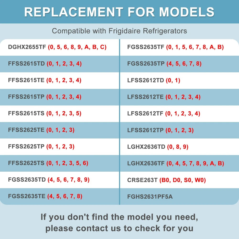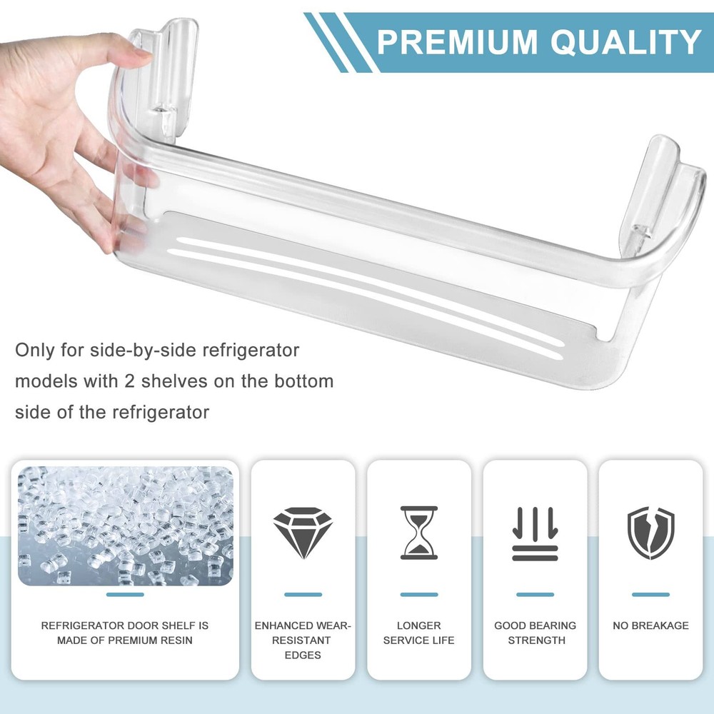 Part Information: 242126602 Refrigerator Door Bin Part(Side Shelf Rack) 242126602 Refrigerator Door Bin specifications: Material: Premium Resin Quantity: Pack of 2 242126602 Refrigerator Door Bin> Connection Method: Straight connection Fixes the following symptoms: ❶Prevent breakage ❷Anti-aging ❸Corrosion resistance ... Please Note: This is intended as a guideline only, as other items can cause the same symptoms Worry-free installation: You don't need a professional repairman to fix refrigerator. Even the homeowner can perform the installation process easily and quickly. If you are not sure how to install, watch the related video to help you Apply to: with Frigidaire Refrigerators: DGHX2655TF (0, 5, 6, 8, 9, A, B, C) FFSS2615TD (0, 1, 2, 3, 4) FFSS2615TE (0, 1, 2, 3, 4) FFSS2615TP (0, 1, 2, 3, 4) FFSS2615TS (0, 1, 2, 3, 5) FFSS2625TE (0, 1, 2, 3) FFSS2625TP (0, 1, 2, 3) FFSS2625TS (0, 1, 2, 3, 5, 6) FGSS2635TD (4, 5, 6, 7, 8, 9) FGSS2635TE (4, 5, 6, 7, 8) FGSS2635TF (0, 1, 5, 6, 7, 8, A, B) FGSS2635TP (4, 5, 6, 7, 8) LFSS2612TD (0, 1) LFSS2612TE (0, 1, 2, 3, 4) LFSS2612TF (0, 1, 2, 3, 4) LFSS2612TP (0, 1, 2, 3) LGHX2636TD (0, 8, 9) LGHX2636TF (0, 4, 5, 7, 8, 9, A, B) CRSE263T (B0, D0, S0, W0) FGHS2631PF5A NOTE: The above brand names are only used to prove compatibility 【Model Reference】Fits Frigi.daire Side-By-Side Refrigerator: FFSS2625TS0, LFSS2612TF0, LGHX2636TF, LGHX2636TD, LFSS2612TP, LFSS2612TF, LFSS2612TE, LFSS2612TD, FGSS2635TP, FGSS2635TF, FGSS2635TE, FGSS2635TD, FFSS2625TS, FFSS2625TP, FFSS2625TE, FFSS2615TS, FFSS2615TP, FFSS2615TE, FFSS2615TD, DGHX2655TF, CRSE263TW0, CRSE263TS0, CRSE263TD0, CRSE263TB0, FGHS2631PF5A etc. To save your time and avoid making a purchase mistake, make sure the model before you buy 【Part Number】242126602 Refrigerator door shelf replace 2421266, 4547407, AP6278233, PS12364199, EAP12364199, PS2421266 etc. Only for side-by-side refrigerator models with 2 shelves on the bottom side of the refrigerator (Door Shelf Bin Lower) 【Notice】Suitability and durability are your first choice when you are concerned about refrigerator shelf bin parts. We use rigorous testing to ensure the suitability of our products for buyers' refrigerator shelves. Maximum Length: 16", Front Height: 5 3/4", Depth: 4". If the measurement is off by 1/8", then this will not fit your model 【Material Structure】Our 242126602 refrigerator shelf is completely designed with non-polluting, safe, hygienic and highly eco-friendly materials. Refrigerator door shelf is made of Premium resin. Upgraded the material to increase durability while maintaining safety. Easy to install, saving time and money. Guaranteed to exceed OEM specifications 【After Sale】100% Quality of Service - All refrigerator shelves are 100% safety tested to ensure consistent quality you can trust. The quality of the refrigerator side shelf has been certified at home and abroad. We serve you sincerely. For whatever reason you are not satisfied, you can request a . If you are not satisfied with the frigi.daire shelf parts, us! will show you our sincere attitude and satisfactory solution