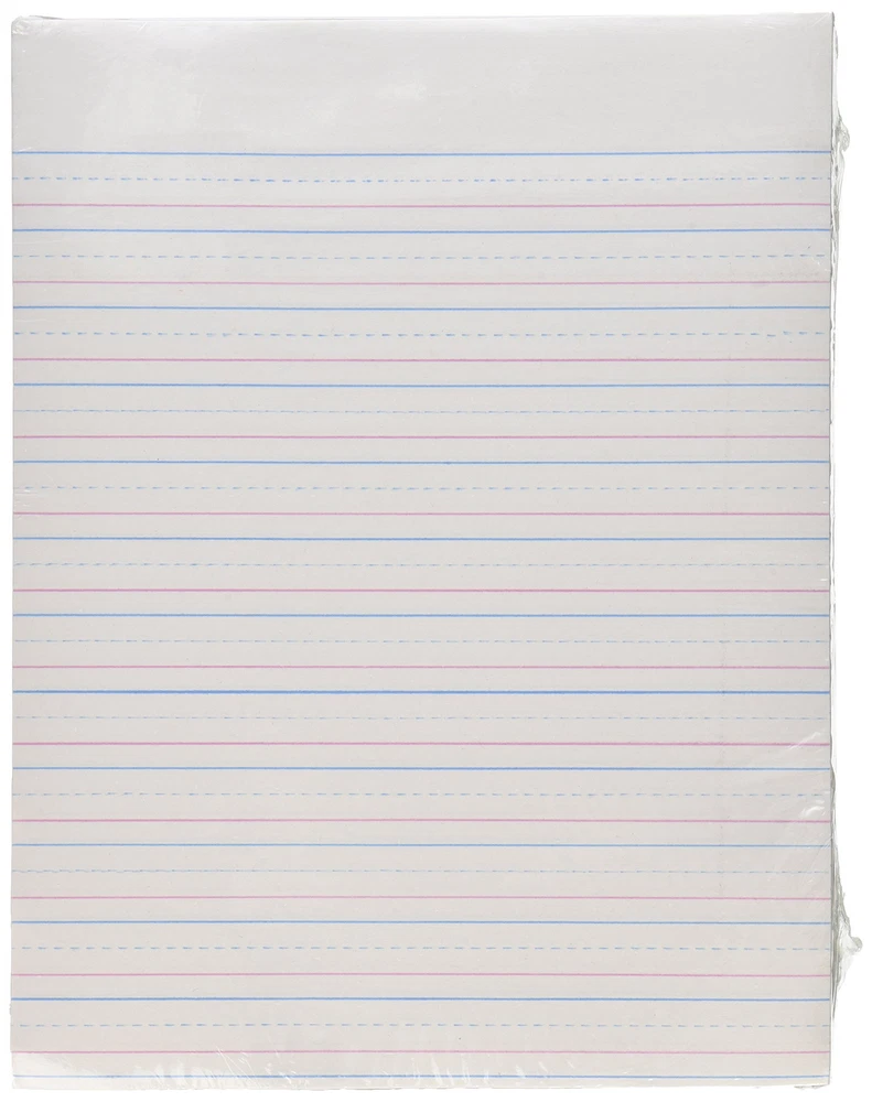 Multi-Program Handwriting Paper measuring 8 x 10-1/2 inches features short way ruling on both sides with red baselines, blue dotted midlines and blue headlines. Brilliant paper for 2-3 has 1/2 inch ruling, 1/4 inch broken midline and 1/4 inch skip space. Paper offer rulings that conform to both the Zaner-Bloser and D'Nealian program, sold as 500 sheets per ream. Made in the USA. Download School Smart Ruled Paper Guide Sold as 500/Pack. Rulings conform to Zaner-BloserTM and D'NealianTM handwriting programs. Bright paper ruled on both sides with red baselines, blue dotted midlines and blue headlines. Picture Story paper is ruled with a 4-1/4? picture space on both sides.. Each ruling is available in 40 sheet and 500 sheet reams..