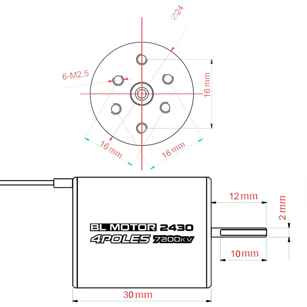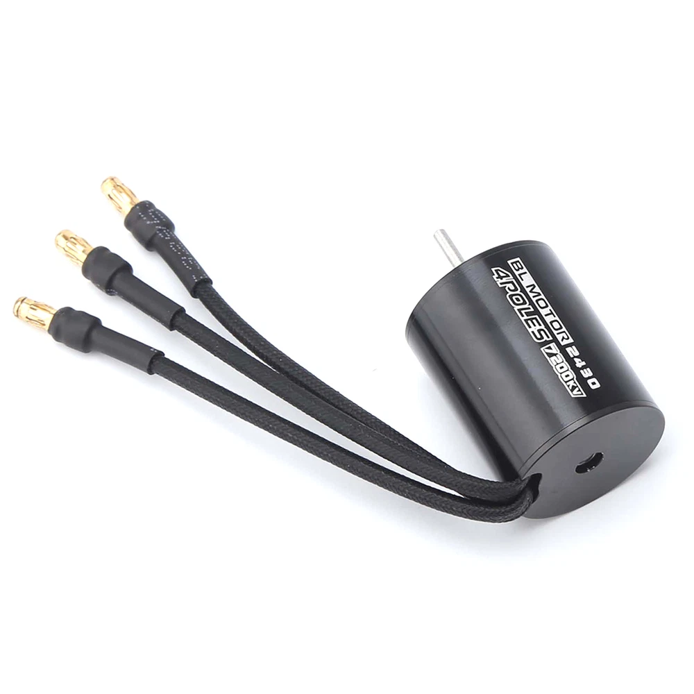 The set includes a 2430 7200KV 4P Brushless Motor and a 25A brushless Electric Controller(), which is perfect for the 1/16 1/18 auto car on road. This 2430 Brushless Motor is built from the materials available, and is designed to provide both quality and performance at an affordable price. And it's with alloy parts that are produced on the latest milling machines. Additionally, the 25A brushless features enhanced throttle response, acceleration, strong breaks and throttle linearity. Motor Features: 4 poles Hi-torque motor design. machined 6061 billet alumium heatsink can. High purity windings maximizes efficiency. High RPM ABEC5 oversized bearings. Universal fits 1/16 1/18 brushless -multi-mounting system for M2.5 screws. balanced rotor, smoothness for best reliability and maximum RPM. Stator - Thin (0.35mm) laminations. Removable/replaceable. engineered for maximum energy conversion. Specification: RPM: 7200KV Current: 24A Watts: 200W Can Size: 2430 Sensored: No Can Diameter: 24mm Can Length: 30mm Shaft Diameter: 2mm Shaft Length: 12mm Connector: 3.5mm Weight: 45.5g/1.6oz voltage: 7.4V(2S) Note: there's some little error from human measuring. Electric Controller Features: Compatible with sensorless brushless motors. High -interference capability. Using software interface to set or update the software. smooth and accurate throttle linearity. response to throttle input. Mutiple features: low voltage cut-off , over-heat and throttle signal loss . Specifications: Cont. Current: 25A Burst Current: 90A/10sec : 2 Cell Lipo / 4-6 Cell NiMh BEC: Yes BEC Output: 5V/1A Plugs: T Male Motor Plugs: Female 3.5mm Connector Size: 40*27*15mm Weight: 29g /1oz Package size: 10 * 8 * 6.5cm/ 3.9 * 3.1 * 2.5in Package weight: 105g/3.7 Package list: 1 * 2430 7200KV 4P Sensorless Brushless Motor 1 * 25A Brushless Electric Controller