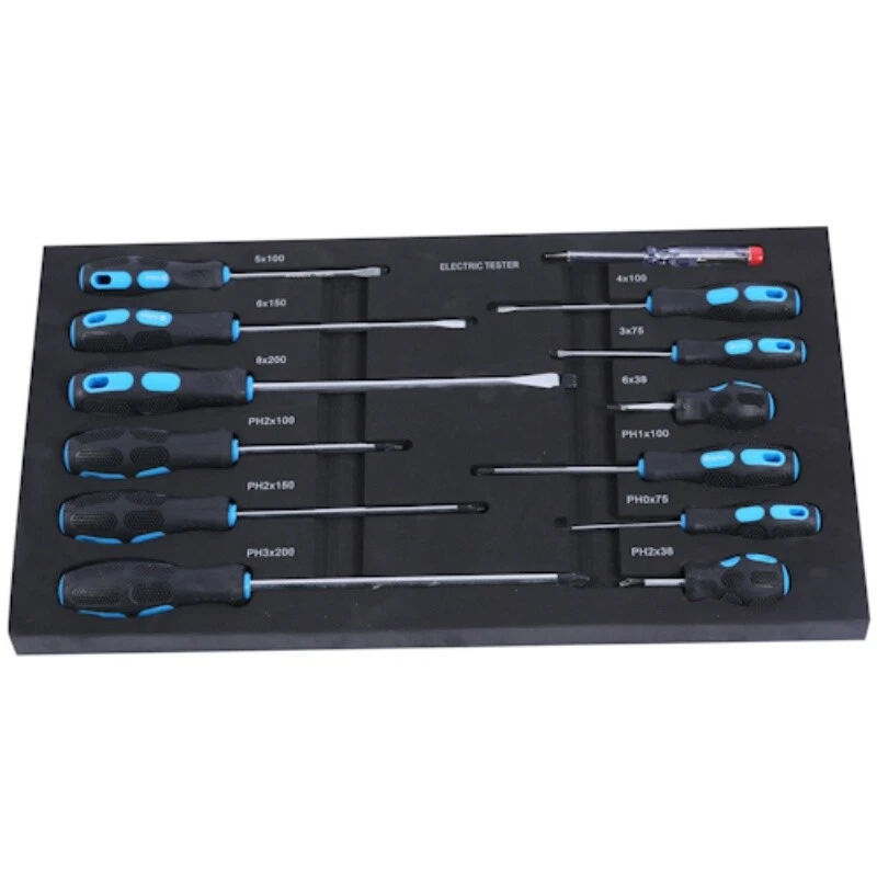 Product Features The metal storage cabinet comes with four wheels, two of which have parking brakes, so you can move the cabinet around freely or park in one place. The opening and closing of the drawers of the tool cabinet is very gentle thanks to the ball-bearing drawers. The storage surface provides additional space for storing and arranging tools you often need. The robust and powder-coated steel construction is used for high wear resistance. Description One Side with Pull Handle This product comes with a handle on one side, which not only helps to push and pull it more, but allows you to move it more freely 4 Drawers with Wheels Drawers can easily accommodate needed items such as folders, notebooks, tools, etc. 2PCS with Brake and 2PCS without Brake With swivel casters could maneuver easily around work area. The wheels have locking mechanisms to prevent the tool cabinet from moving around on its own while in use. Tool Set Four drawers with assorted tool sets Product Information Product Name 4 Drawers Tool Cabinet with Tool Sets Material Cold Rolled Steel Surface Finish Powder Coating Casters 4" Casters (2PCS with brake and 2PCS without brake) Size 24.25*13*29.33 Package Size 28.86*27*15.18 Color Red Net Weight 19KG Gross Weight 21KG