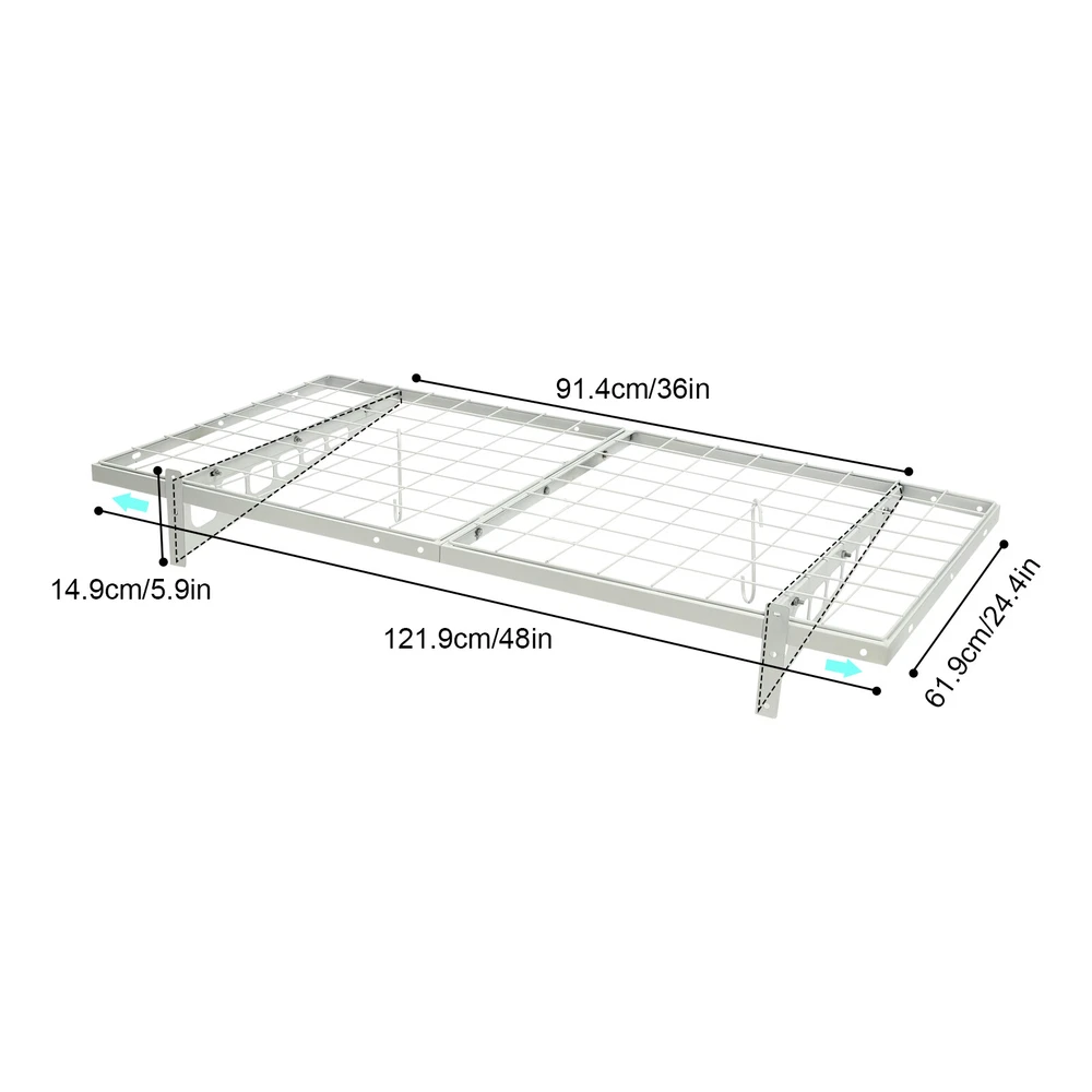 Description Made of steel wire, the garage storage rack has triangular brackets and zip ties design so it can withstand heavy loads. It comes with four hooks to extend your storage space, meeting your daily storage needs. Meanwhile, the neat grid and sleek white finish add a touch of stylish yet vintage look to it. Key Features Build to Last: The product is made of steel wire, after the plastic spraying process, with high strength, corrosion resistance, abrasion resistance, and long service life. 24*48 inch Wall Shelf Garage Storage Rack 2 PACKS Garage Shelving W/ 4 Hooks Description Made of steel wire, the garage storage rack has triangular brackets and zip ties design so it can withstand heavy loads. It comes with four hooks to extend your storage space, meeting your daily storage needs. Meanwhile, the neat grid and sleek white finish add a touch of stylish yet vintage look to it. Key Features Build to Last: The product is made of steel wire, after the plastic spraying process, with high strength, corrosion resistance, abrasion resistance , and long service life. High Load-bearing Capacity: The high-quality material, sturdy triangular brackets, welding process, and zip ties allow it to withstand up to 440 lbs without falling, giving you a piece of mind. And each hook can withstand up to 33lbs. Set of 2: The package includes two-piece garage storage racks with 4 hooks , so you can choose different mounting methods, such as parallel mounting, vertical mounting, and separated mounting, which can fully meet your daily storage needs. Large Storage Capacity: The wall-mounted storage rack is 48*24.4*5.9in and the removable storage hooks can be moved to any position, holding toolboxes, sports equipment, gardening tools, and more equipment, flexible to meet your actual storage needs, and saving space in the garage. Stylish Appearance: The sleek white finish and the neat vintage grid appearance make it a nice garage decor. At the same time, toolkits and clutter are arranged in a neat and orderly manner, which is more pleasing to the eye. Effortless Assembly: Complete installation accessories, a simple structure, and pre-drilled holes allow you to complete the assembly in a very short time. Adjustable Spacing Design: The spacing between the two triangular brackets can be adjusted from 12 to 24in according to your installation needs. Guaranteed Customer Service: We stand behind all our guests and look forward to assisting you with your purchase. It is our pleasure to answer your confusion and questions. The end of the story between us is not "we sell and you buy". Net Boards: They are not just strong and durable but also boast good ventilation, keeping your items dry and allowing the odor to dissipate in a timely manner. Small Holes: The product has several small holes for installing and hanging the hooks, which is more convenient to use. Thickened Frame: It securely fastens the wire grid to the edges to prevent them from falling off, keeping the product stable and firm. Application It's suitable for hanging or storing tools, storage boxes, sports equipment, and other items. Specifications Material: Steel Wire, Nylon Surface Treatment: Plastic Spraying Color: White Style: Vintage Mount Type: Wall Mounted Load-bearing Capacity: 200kg/440lbs Each Hook Load-bearing Capacity: 15kg/33lbs Assembly Required: Yes Number of Items: 2 Number of Hooks: 4 Gross Weight: 16kg/35lbs Separated Product Size: 122*62*15cm/48*24.4*5.9in Combined Product Size: 244.6*62*15cm/96.3*24.4*5.9in Suitable Spacing: 30.5, 40.6, 46, 61cm/12, 16, 18, 24in(Separated)/30.5, 40.6, 61/12, 16, 24in(Combined) Package Size: 62*62*14cm/24.4*24.4*5.5in Package Included 2* Garage Storage Racks 4* Hooks All Accessories for Installation Notes It is normal that the expansion screw will blow up after the force is applied. Before purchasing, please check the product information carefully to make sure the load bearing of your wall and the installation environment are suitable! Please check the screw hole spacing carefully if it is installed on the studs! Cement walls need to be perforated and thin wood walls or hollow walls need to be supported by a certain thickness of solid wood struts(not included) laid on the front or back of the wall. Please allow the slight color difference caused by the shooting light and 1-3cm error due to manual measurement, and make sure you do not mind before you order. Payment Delivery details Terms of sales About us Contact us Payment We accept ebay payment 。 Fees such as import duties, taxes are not included in the item price or shipping costs. These charges are the buyer's responsibility. Delivery details Shipping: 2-9 working days to: USA Terms of sales We maintain high standards of excellence and strive for hundred percent customer satisfaction. Feedback is very important to us. We hope that you contact us immediately before you give neutral or negative feedback, so that we can address your concerns. It is impossible to address issues if we do not know about them! About us Your satis faction is our ultimate goal. We work hard to earn your trust and future business. Our certified technicians have tested each item before shipping. The unit comes with 1 year limited warranty on all manufacturing defects. a) If you receive a defective item, you may return it or ask for a discount. Please contact us within 14 days after you receive the package. b) What you returned must be intact and in its original packaging as re? u. Customer is responsible for shipping costs of the returned item. c) We will cover the cost of shipping back t with the shipping rate indicated in the registration page. We will send you a new unit or refund the full payment you paid. Thank you. Contact us Business Hour Business Hour: Monday To Friday: 8:30 AM to 5:00 PM (Beijing China time) Due to time zones, our reply to your questions may not be immediately. But within above working time, we will reply your email within 24 hours. If it's non-workda