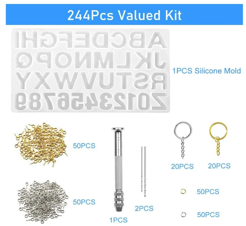 244Pcs Alphabet Silicone Resin Casting Molds Kit, Reversed Letters & Numbers Epoxy Casting Molds with Pin Vise Set for DIY Making Keychain/House Number Resin Crafts Brand Nupinta Age Range (Description) All Ages Color Multicolor Theme Numbers,Number,Letters,Alphabet Cartoon Character Alphabet,Numbers About this item 💥Great Value Big Set: This silicone keychain mold kit comes with 1 pcs of backward letter silicone mold, 100 pcs of screw pin eyes, , 100 pcs of jump rings, and a pin vise with 2 drill bits. Furthermore, there are 40 pcs of flat keyrings with chain in the package, you can make more your special decorations freely, and share more crafts with friends. Help you make a complete craft easily and add colors to your life. 💥Personalized DIY Design: The reversed alphabet silicone mold allows you to make your own accessories according to your preferences. Choose different colors of materials to make your special crafts. With 26 alphabet letters and 10 numbers that can be arranged in a myriad of combinations, you can find your full amazing creativity! 💥Versatile: The resin epoxy mold is suitable to make individualized epoxy keychains, house numbers, jewelry necklaces, pendants, earrings, and etc. Share your handicraft with your friends and family, enjoy a happy time together. 💥High-Quality and Sturdy: The reversed silicone letters mold is made with great quality durable silicone, which make the epoxy mold is resistant to tearing. The hand drill made of premium stainless steel, sturdy and durable. 💥Easy to Use: Put the resin and your favorite elements in the casting mold, once the resin is cured, you can push the amazing craft out easily. With the letters being reversed on the mold, the front of the letter is perfect and smooth. . We offer FREE shipping on all orders! . We ship within Five business days of payment, usually sooner. . We use a selection of shipping services such as UPS, FedEx, USPS etc. . We only ship to the lower 48 states, no APO/FPO addresses or PO Boxes allowed. . Local pickups and combined shipping options are not provided at this time. . Your satisfaction is a wonderful reward for our efforts. Please assist us by leaving a positive review if you feel pleased with our service. . In the event that you encounter any difficulties related to your order, please do not hesitate to reach out to us directly through the Messaging system on the Ebay platform. Kindly consider opening a COMPLAINT or a RETURN REQUEST as a last resort, only after all other possible measures have been attempted and we have been unable to provide you with assistance. . We will get in touch with you within 24 hours and make every effort to ensure your satisfaction. . Please rest assured of our service quality.
