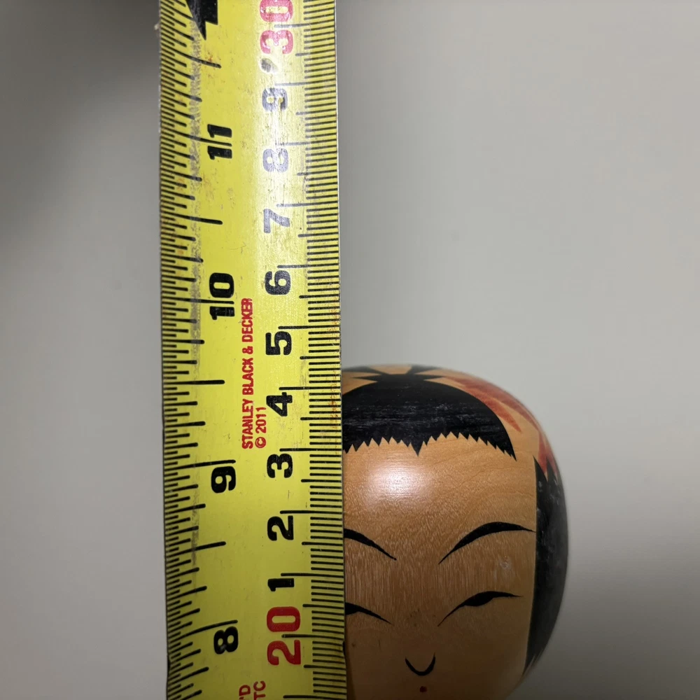 Japanese Kokeshi Doll A Japanese Kokeshi doll that stands approximately 24.5cm tall. This genuine piece of Japanese culture is an interesting objet d'art. History: Kokeshi dolls are Japanese wooden dolls traditionally made for children. It is said that Kokeshi were originally sold to visitors to hot springs in the Tohoku region of Japan during the late Edo period (1600-1868), to supplement business and keep workers' hands busy during the winter months. Over the years they have become increasingly popular worldwide, especially amongst shinnichi (Japanophiles) and collectors. Interesting fact: These dolls are the inspiration behind the Nintendo Mii characters. Please study the photos as they show the condition of the doll. Please note: These Kokeshi dolls are also listed on our own website (Rustique Living) and available in our shop. Therefore this listing may end suddenly if sold through there. Please study the photos as they form part of the description. Free U.K. delivery via Royal Mail / ParcelForce. See our other listings for more Kokeshi's and much more!