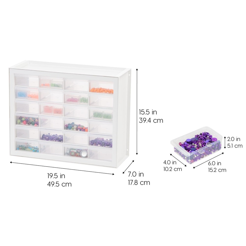 MULTI-PURPOSE ORGANIZER: Perfect tool box & classroom organizer storage solution to organize screws, hardware, small parts, nuts and bolts, stationery, office and classroom supplies, crafts, beads or sewing supplies, fishing gear, and more. STACK OR WALL MOUNT: The cabinet’s grooves on the lid securely lock in one on top of another when stacked. It can be wall-mounted and used to organize screws, hardware, tools, and small parts. MULTI-DRAWERS: Sort, store and organize screws, hardware, small parts, nails, and tools with these multi-drawers tool organizer to grab things easily and quickly. MADE IN USA: High-quality, recyclable materials are used for our domestically-manufactured products. The sturdy plastic makes these durable, and the smooth glide drawers give you easy access to contents. DIMENSION: 19.5”L X 7”W 15.5”H (Drawer: 6”L x 4”W x 2”H).