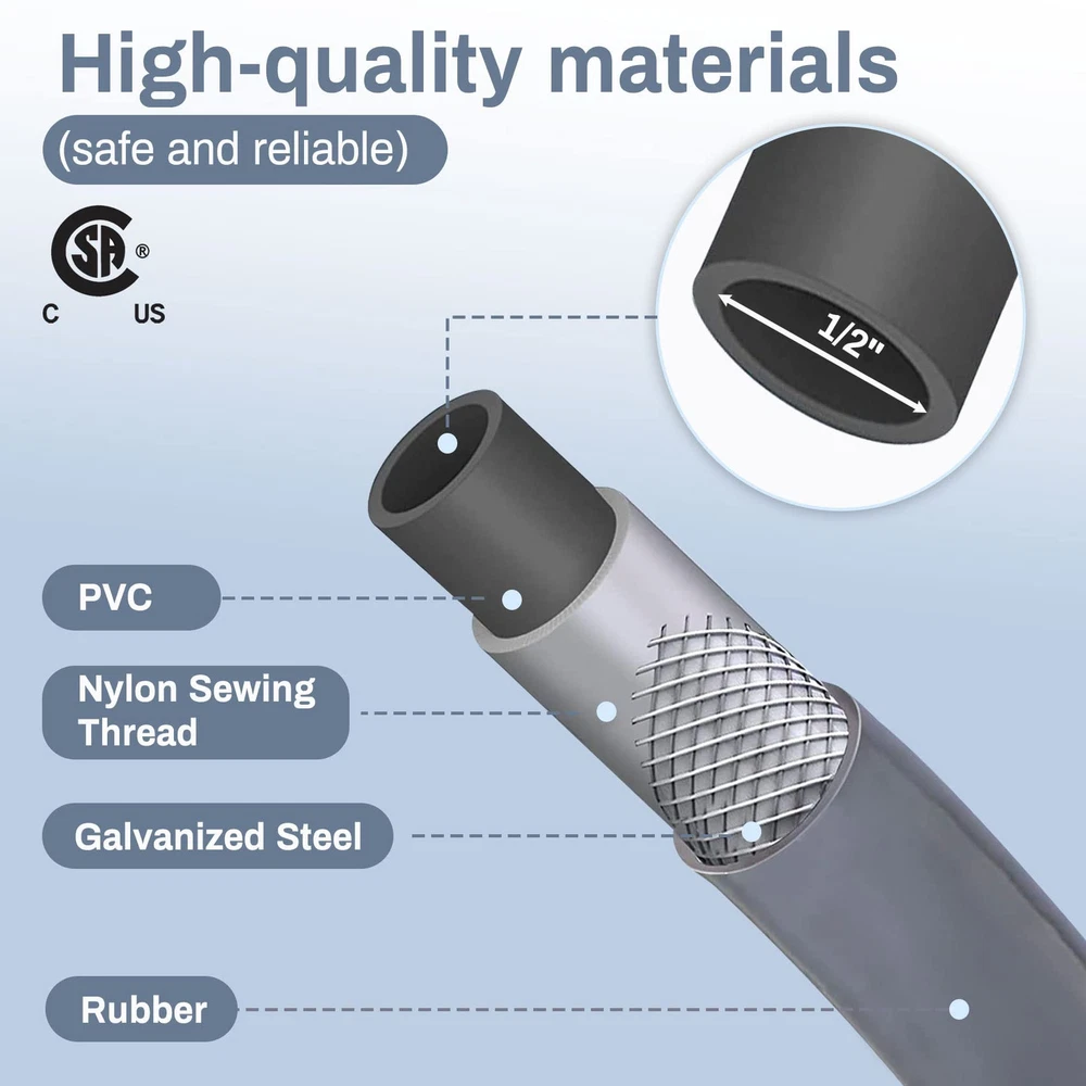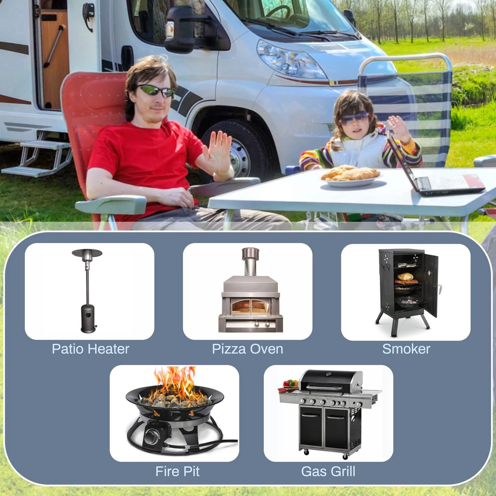 Specifications —— ①24 feet 1/2“ natural gas hose (1/2” male quick connect x 1/2“ Female Flare), ②1/2” quick connect adaper (1/2“ female NPT x 1/2” female quick connect). ③1/2 Male Flare to 3/8 Female Flare Adapter, ④3/8 Male Flare to 1/2 Male NPT Adapter. Used For Natural Gas Appliances —— Max BTU: 100000 btu/H. The 1/2 quick connect natural gas hose is used for portable generators, Weber Genesis E-435, 38400001 Genesis S-435, Summit E-470, S-670, and 7270001 Summit S-470. By using the 3/8“ female x 1/2” male flare adapter,Also for Weber Spirit S-315, E-310, Spirit II E-310, Genesis S-325S, EX-325S, E-325S, E-335, S-335, Smart SX-325S, Smart EX-335, SX-335, EPX-335, SPX-435 and Weber 57067001 Q3200. It is also suitable for , patio heaters, fireplaces, pizza ovens and many other gas appliances. Safe and High Quality —— 1/2 quick disconnect gas hose is made of natural rubber on the outer layer and flexible stainless steel structure on the inner layer, which has excellent weather resistance, crack resistance and rust resistance, etc., durable. CSA Certified —— 1/2 natural gas line hose is CSA certified for better safety, the material used is 100% high quality brass to provide good air tightness for connection, you can rest assured of use. Warm Tips—— Before purchasing, please measure the distance between the gas equipment and the gas source, and reserve space for moving the equipment to ensure that the purchase size meets your needs. After installation, please be sure to use soapy water to test for leaks to prevent accidents.