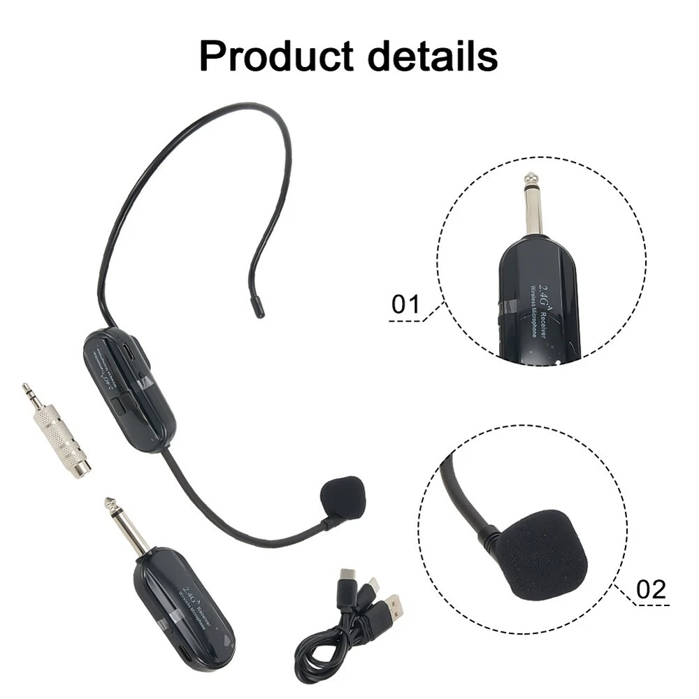 2.4G Wireless Microphone Headset 160FT Range Mic System for Teach Outdoor Speech DESCRIPTION Features: brand new and high quality. Wireless Microphone Headset : Built-In High Sensitivity Condenser Microphone, Transmission Distance Upgrade To 160 Feet (50m) Signal Stability, No Delay, No Radiation, Anti-Howling, Anti- , Constant Frequency , Clearer Sound Quality. Charge And Work Of Wireless Microphones: The Transmitter And Receiver Are Built-In 120 Mah Rechargeable Lithium-Ion Batteries That Can Offer About 6-8 Hours Working Time. Usb Cable Has Two Usb V2.0 For Charge For The Transmitter And Receiver At The Same Time, Fully Charge Is Only 2.5 Hours. Perfect Application: The On The Receiver Is 6.35mm. For 3.5mm ,Please Use The Additional 3.5mm Adapter(Included)To Connect More Equipments. Humanized and thoughtful design: the microphone will automatically shut down if you do not use the microphone within 45 minutes of no , saving power and worry. Built-In Cardioid for Polar Pattern Condenser Microphone,Widely Applied To Conference,Speech, Web Podcast, Outdoor Live, Yoga Instructor, Voice Amplifiers, Dancing Instructor, , Game Etc. Specification: Audio Signal: Digital Sampling 16bit - 16KHZ Frequency Response: 100HZ-15KHZ Transmission Distance: 50M Transmission Power Consumption: < 15MA Reception Power Consumption: < 10MA Battery Type: Lithium Ion Battery Charging Time: 2hours Continuous Working Time :6-8hours Frequency Band: 2400-2483Mhz Modulation : GFSK Package list: 1 * Headset Mic Transmitter 1 * Receiver 1 * 6.35mm to 3.5mm adapter 1 * 2 in 1 USB cable 1 * User Manual Note: Does not support mobile phones, speakers, PC, or laptop use. Adapter color: gold and silver random delivery. Please refer to the measurement. Tiny measuring er ror is allowable in normal range. There might be a little color difference due to the monitor, camera or other factors, please refer to the physical item. POLICES Shipping Payment WARRANTY We only ship to confirmed ebay Order addresses. Please comfirm that your Order address is in line with your shipping address. Please kindly note that the c ombined shipping is not provided because the shipping fee is calculated by weight. Also, the each additional item means exactly the the same color and size. It takes about 7 -15 working days to US; about 10-30 working days to other countries. Transit time may be a little delayed because of the bad weather and customs inspection . If you do not receive your item within 30 working days since payment finished, please contact us immediately for further assistance. Payment must be completed within 5 days. If you have any problems about payment, please contact us via ebay message. We strive for 100% customer satisfaction! Positive Feedback is very important to us. If you have any questions, p lease feel free to contact us via "Ask seller a question" . We will reply your email within 24 working hours. On Jan 2, 2025 at 07:49:11 PST, seller added the following information: