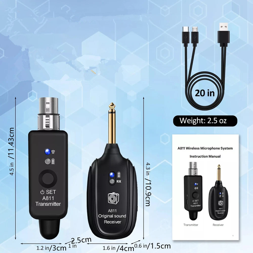 Product Description 2.4GHz Microphone Wireless System XLR Transmitter Receiver Rechargeable Adapter Features: The wireless microphone converter features a plug and play design, eliminating the need for complex setup. Simply connect the device and start using it immediately, making it perfect for users of all technical levels. Utilizing advanced wireless audio transmission technology, this xlr transmitter and receiver ensure clear and stable audio signals. Enjoy high-fidelity sound quality whether at home or outdoors. The microphones wired to wireless system supports ultra-long-distance transmission, covering up to 30 meters. Ideal for various scenarios, including performances, recordings, and home entertainment, it offers seamless adaptability. Equipped with gold-plated connectors, the microphone wireless system resists oxidation and corrosion, ensuring stable signal transmission over long-term use. This greatly enhances the durability and reliability of the product. The wireless mic adapter supports the simultaneous use of multiple sets of devices. Users can flexibly expand their setup to perfectly suit different audio equipment, meeting diverse usage needs with ease. Specifications: Audio Frequency Response: 20Hz – 20KHz (+1dB/-3dB) Sampling Rate: High Resolution 24-bit/48kbps audio Dynamic Range: 108dB Latency: <4ms Working Range: 100ft / 30M Battery Life: 10 Hours Charging Time: 1.5 Hours Frequency Stability: ±3PPM Package includes: 1* Receiver 1* Transmitter 1* USB Cable If you have any questions, please feel free to contact us via ebay. We usually respond within 24 hours. Payment Shipping Returns Contact Us We accept all verified payments from ebay. Orders will be shipped after receiving cleared payment. Payment due within 7 days after auction ends and for buy it now listings. We ship most of our orders within 24 hours, and may up to 48 hours for. If you want faster shipping way. Please contact us before making payment. Sometimes due to problems with our transportation company system, your shipping information may be delayed to update. We recommend that you try again after 3-4 days. If you still haven't checked the shipping information, you can contact us by ebay message. Always believe we can figure things out with communication, if it comes to return, the pacakge must be intact and the same as you receive. If you have any questions, please feel free to email our service specialists 24 Hours a Day, 7 Days a Week. We will reply you ASAP. Return/refund is accepted within 30 days after the buyer receives the item. NO exchange will be accepted after 30 days from the date when the item is received. Please contact us first before returning your product!!! If you have any questions, our Customer Service staffs welcome you to email us. We strive to answer all questions and resolve any problems as quickly as possible. You can contact us 7*24, we will reply at the first time, and we will surely solve your problems. Note: 1.We try our best to reply to your emails as soon as possible, however, due to high volume of daily incoming emails and time zone difference, we may not be able to reply your emails immediately. Please allow 1 business days for us to response. If you do not receive any reply from us, please check your email ensuring your mailbox has not reached full size. 2.Due to some ISP SPAM filter settings, you may not be able to receive our replies; if you have problems receiving our emails, you may need to use a different email account to contact us. 3.Please give us the opportunity to resolve any problem. We understand the concerns and frustrations you might have, and will try our best to resolve the issues. Please email us before leaving any negative feedback or open any dispute on PayPal. 4.We care about our valued customers, and will always try to help you. So if you have any problems, please e-mail us immediately. Payment We accept all verified payments from ebay. Orders will be shipped after receiving cleared payment. Payment due within 7 days after auction ends and for buy it now listings. Shipping We ship most of our orders within 24 hours, and may up to 48 hours for. If you want faster shipping way. Please contact us before making payment. Sometimes due to problems with our transportation company system, your shipping information may be delayed to update. We recommend that you try again after 3-4 days. If you still haven't checked the shipping information, you can contact us by ebay message. Returns Always believe we can figure things out with communication, if it comes to return, the pacakge must be intact and the same as you receive. If you have any questions, please feel free to email our service specialists 24 Hours a Day, 7 Days a Week. We will reply you ASAP. Return/refund is accepted within 30 days after the buyer receives the item. NO exchange will be accepted after 30 days from the date when the item is received. Please contact us first before returning your product!!! Contact Us If you have any questions, our Customer Service staffs welcome you to email us. We strive to answer all questions and resolve any problems as quickly as possible. You can contact us 7*24, we will reply at the first time, and we will surely solve your problems. Note: 1.We try our best to reply to your emails as soon as possible, however, due to high volume of daily incoming emails and time zone difference, we may not be able to reply your emails immediately. Please allow 1 business days for us to response. If you do not receive any reply from us, please check your email ensuring your mailbox has not reached full size. 2.Due to some ISP SPAM filter settings, you may not be able to receive our replies; if you have problems receiving our emails, you may need to use a different email account to contact us. 3.Please give us the opportunity to resolve any problem. We understand the concerns and frustrations you might have, and will try our best to resolve the issues. Please email us before leavi