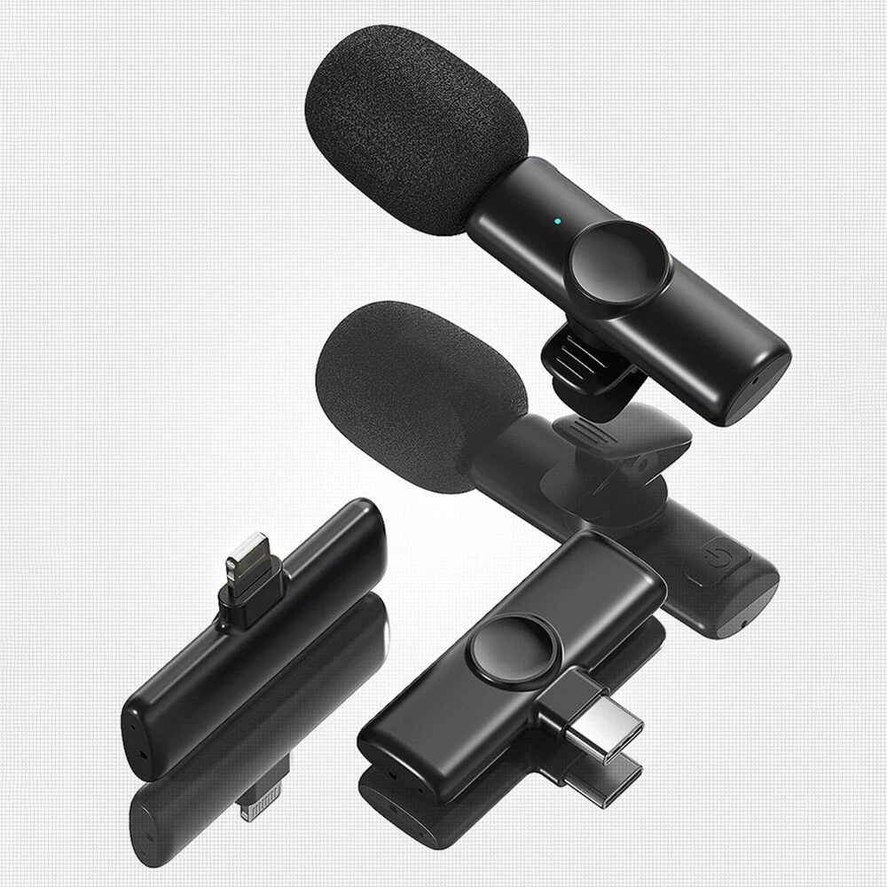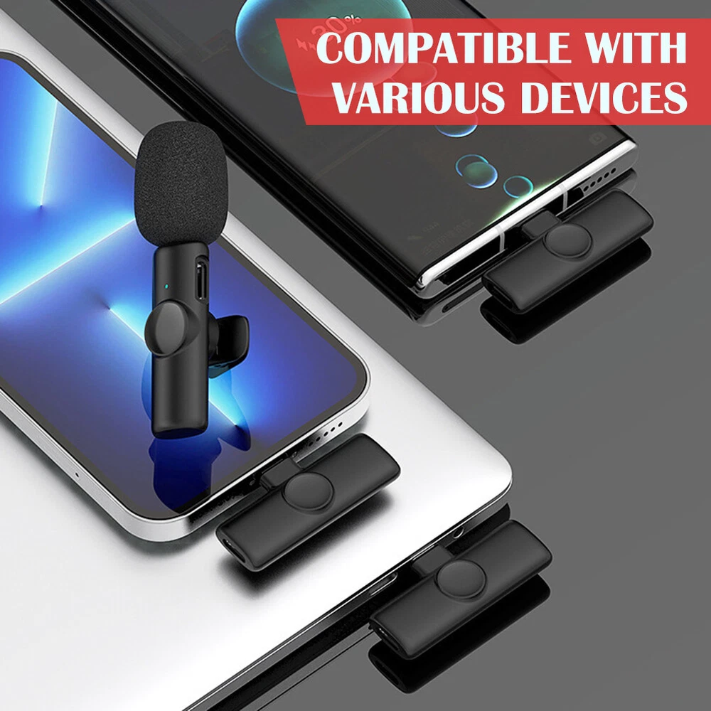 2.4GHz Wireless Lavalier Lapel Microphone Low Noise Mic Recording for IPhone US Features: *1. Wide Compatibility: This lavalier is compatible with iPhone7, 7 Plus,8, 8 Plus, X, XR, XS, XS Max, 11, 11 Pro,11 Pro Max, 12, 12 Pro and iPad 2/3/4, iPad Air series,iPad Pro Series (Note: Not compatible with latest versions of 12.9-inch and 11-inch iPad Pros with type-C ports.). *2. Wireless Design & Automatic Pairing: This wireless microphone will automatically connect without the need to download APP or via Bluetooth-compatible. This product is equipped with a receiver with the maximum working range of 65ft, therefore, you just need to plug the receiver into the iOS device and turn on the microphone. Super simple and convenient in operation, freeing you from messy cables, ensuring a more relaxed and enjoyable live streaming. *3. Portable and Durable: This lavalier can work for up to 10 hours thanks to its built-in 80MA battery. It also comes with a TYPE-C port for convenient charging. The compact size with simple shape makes it more convenient to wear. *4 .Smart Noise Reduction 48KHz: Adopt noise reduction chips, this wireless mic features super strong anti-interference ability with effective recognition of the original sound even in noisy environment, offering you professional full frequency audio 48KHz stereo CD quality. *5. Record without Delay: The wireless microphone is characterized by its stable signal and quick response, which is especially designed for You Tube, Facebook, Live, TikTok creators, Vlogger, Blogger, Podcasters, interviewers and other video recording enthusiasts. Description: *1. Frequency range: 2.4GHz *2. Charging voltage: DC4.8~5.4v *3. Transmission distance: barrier-free 20 m *4. Human obstacle distance: about 7 m *5. Microphone: digital microphone *6. Working time: 10h *7. Signal to noise ratio: 64 dBm *8. Start-up current: 1.5~6mA *10. Transmission delay: 9MS *11. Standby current 4.3~5.5mA *12. Sensitivity (microphone): -26dB *13. Battery capacity: button battery 75mAH *14. Antenna type: ceramic antenna *15. Charging current: 65mA *16. Frequency response range: 20-20KHZ Package includes: Lavalier x 1/2 Receiver x 1 Charging Cable x 1 User Manual x 1 Look , You may also like