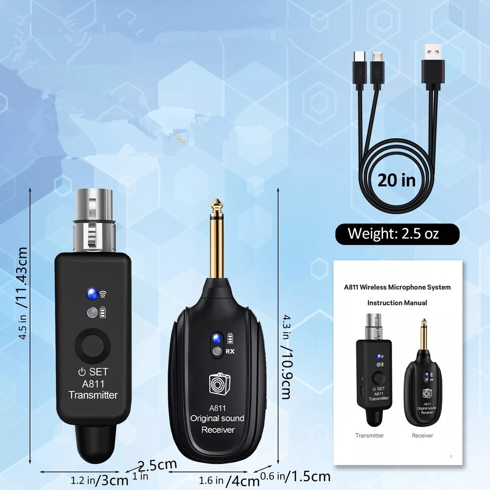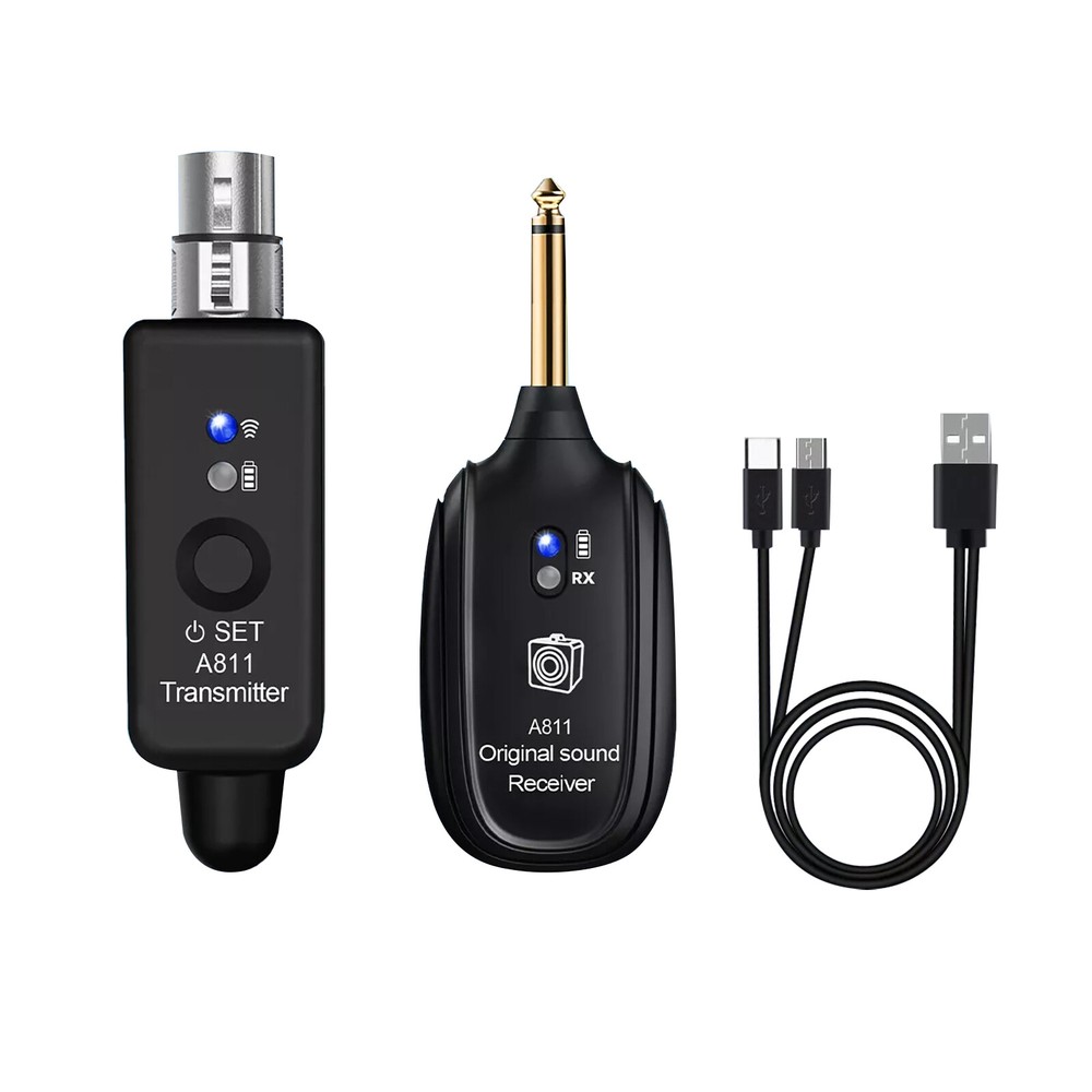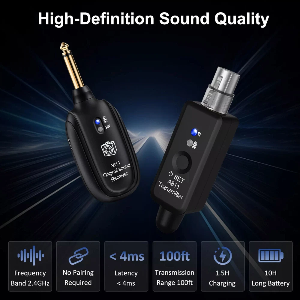 2.4GHz Wireless Microphone System with XLR Transmitter, Receiver, and Rechargeable Adapter for Seamless Audio Performance
