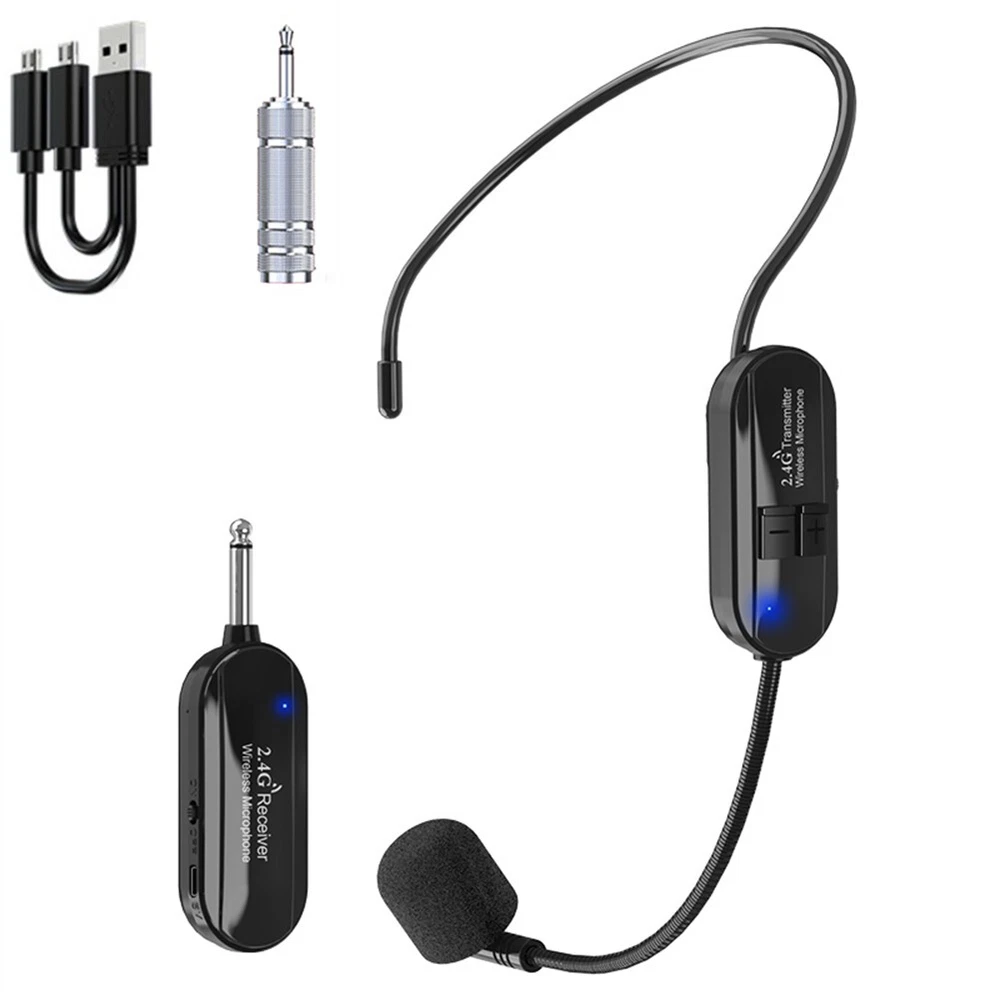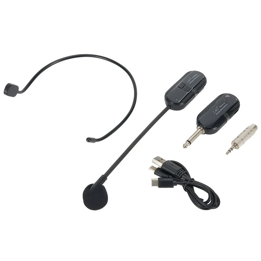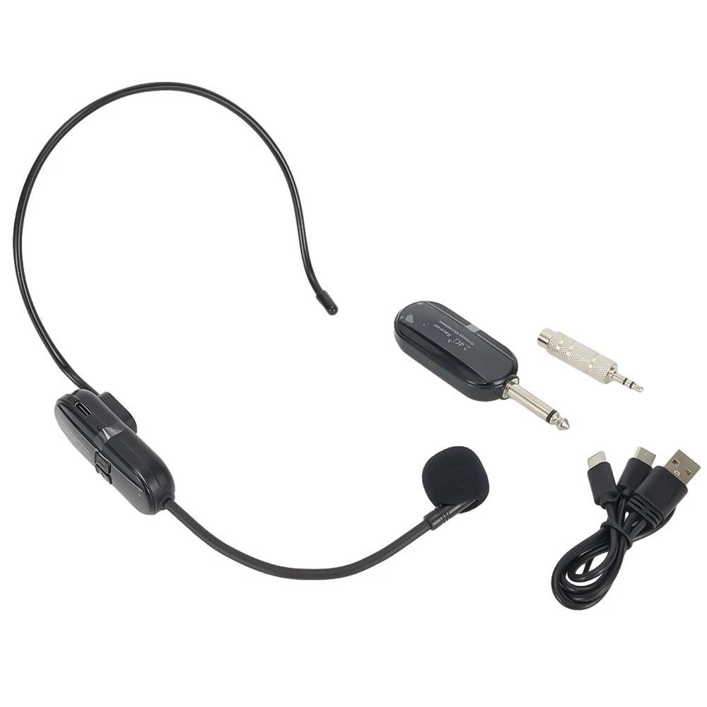 Product Description Features: brand new and high quality. Wireless Microphone Headset : Built-In High Sensitivity Condenser Microphone, Transmission Distance Upgrade To 160 Feet (50m) Signal Stability, No Delay, No Radiation, Anti-Howling, Anti- , Constant Frequency , Clearer Sound Quality. Charge And Work Of Wireless Microphones: The Transmitter And Receiver Are Built-In 120 Mah Rechargeable Lithium-Ion Batteries That Can Offer About 6-8 Hours Working Time. Usb Cable Has Two Usb V2.0 For Charge For The Transmitter And Receiver At The Same Time, Fully Charge Is Only 2.5 Hours. Perfect Application: The On The Receiver Is 6.35mm. For 3.5mm ,Please Use The Additional 3.5mm Adapter(Included)To Connect More Equipments. Humanized and thoughtful design: the microphone will automatically shut down if you do not use the microphone within 45 minutes of no , saving power and worry. Built-In Cardioid for Polar Pattern Condenser Microphone,Widely Applied To Conference,Speech, Web Podcast, Outdoor Live, Yoga Instructor, Voice Amplifiers, Dancing Instructor, , Game Etc. Specification: Audio Signal: Digital Sampling 16bit - 16KHZ Frequency Response: 100HZ-15KHZ Transmission Distance: 50M Transmission Power Consumption: < 15MA Reception Power Consumption: < 10MA Battery Type: Lithium Ion Battery Charging Time: 2hours Continuous Working Time :6-8hours Frequency Band: 2400-2483Mhz Modulation : GFSK Package list: 1 * Headset Mic Transmitter 1 * Receiver 1 * 6.35mm to 3.5mm adapter 1 * 2 in 1 USB cable 1 * User Manual Note: Does not support mobile phones, speakers, PC, or laptop use. Adapter color: gold and silver random delivery. Please refer to the measurement. Tiny measuring er ror is allowable in normal range. There might be a little color difference due to the monitor, camera or other factors, please refer to the physical item. Payment Payment must be completed within 5 days. If you have any problems about payment, please contact us via ebay message. Delivery details We only ship to confirmed ebay Order addresses. Please comfirm that your Order address is in line with your shipping address. Please kindly note that the c ombined shipping is not provided because the shipping fee is calculated by weight. Also, the each additional item means exactly the the same color and size. It takes about 7 -15 working days to US; about 10-30 working days to other countries. Transit time may be a little delayed because of the bad weather and customs inspection . If you do not receive your item within 30 working days since payment finished, please contact us immediately for further assistance. Contact us We strive for 100% customer satisfaction! Positive Feedback is very important to us. If you have any questions, p lease feel free to contact us via "Ask seller a question" . We will reply your email within 24 working hours.