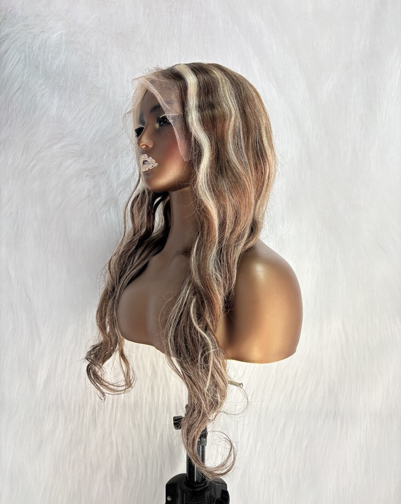 This wig is absolutely stunning! The 100% human hair feels so soft and natural, and the 13x4 lace front blends seamlessly for a realistic hairline. The body waves add volume and movement, while the highlights give dimension. Love that it’s glueless—easy to wear and comfortable all day. The transparent lace is undetectable, and the 24-inch length is perfect for versatile styling. Super easy to install, and the quality is worth every penny. Highly recommend for a flawless, natural look!