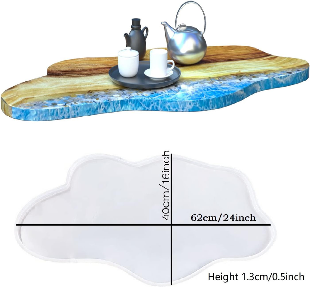 Large Resin Table Mold: you will get 1pcs table silicone mold, size 24*16 inches, depth 0.5in, it can be used to make various resin pouring projects such as coffee table serving tray cheese platter cutting board river table etc Sturdy and Not Deformed: The side lip of the mold has been reinforced and extended to ensure that it is not easy to deform during use Sturdy Silicone Material: the molds made of durable silicone material, superior high tear strength, easy to use and clean, compatible with epoxy resin, casting resin. Glossy Molds for Resin Casting: These molds have a glossy inner surface, the smooth interior makes it easy to de-mold after it’s completely cured, and reduces the need for cutting and polishing, the finished resin work is very shiny and smooth. Tips: if the mold causes deformation during transportation, you can add water to the mold and leave it for a few days, Silicone molds are cleaned with soapy or warm water before and after use, and mold demould agent are used, which can extend the service life Product Description Large Resin Table Mold 24inch Epoxy River Table Mold