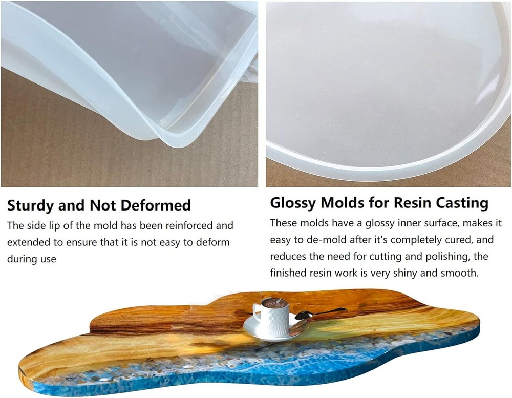 Free eBay listing template designed by dewiso.com Large Resin Table Mold 24 inch Epoxy River Table Mold, Silicone Resin Tray Molds for River Table, Charcuterie Boards, Coffee Table, Desk Board, Cutting Board FREE AND FAST SHIPPING! About this item Large Resin Table Mold: you will get 1pcs table silicone mold, size 24*16 inches, depth 0.5in, it can be used to make various resin pouring projects such as coffee table serving tray cheese platter cutting board river table etc Sturdy and Not Deformed: The side lip of the mold has been reinforced and extended to ensure that it is not easy to deform during use Sturdy Silicone Material: the molds made of durable silicone material, superior high tear strength, easy to use and clean, compatible with epoxy resin, casting resin. Glossy Molds for Resin Casting: These molds have a glossy inner surface, the smooth interior makes it easy to de-mold after it’s completely cured, and reduces the need for cutting and polishing, the finished resin work is very shiny and smooth. Tips: if the mold causes deformation during transportation, you can add water to the mold and leave it for a few days, Silicone molds are cleaned with soapy or warm water before and after use, and mold demould agent are used, which can extend the service life Product We offer a 30-Day Return Policy on items which you are not completely satisfied with. You have the option for a full-refund or an exchange of the item. No returns are available on items shipped outside of the US . Shipping We offer Free Shipping to the US and ship within 2 business days of payment, usually sooner. We use UPS express shipping. That's why your products are usually delivered within 3 days . Contact We try our very best to make sure every customer is completely satisfied. If there's a problem , message us! We're happy to help. 24/7 live chat available.