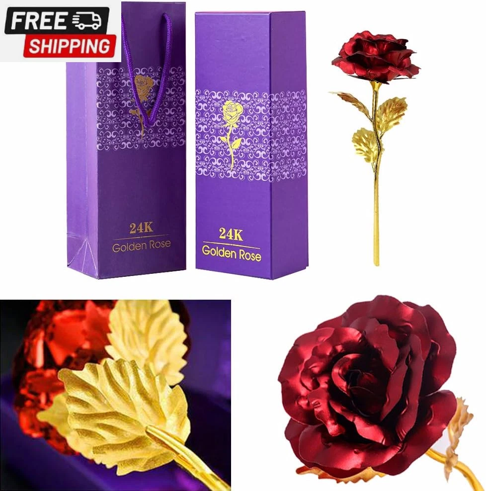 24K Forever Rose Golden Rose, Gold Dipped Rose 24K Rose Flower with Gift Box and Bag for Lover Mother Friends, Christmas Thanksgiving Wedding Anniversary Mother'S Day Valentine'S Day 🌹24K Gold Dipped Rose Flower🌹-- Petal and leaf are made of plastic with thin 24K gold foil plated, the flower rod is made of Polyethylene with gold plated. Come with a gift box and packaging, ideal present for any festival and someone you care about. 🌹Gold Dipped Rose In Full Bloom🌹-- Outlast a bouquet of fresh blooms, never faded flower means everlasting love and friendship and family affection. 🌹Rose Whisper🌹-- Roses are the universal language of love. The rose is a combination of love and beauty, the embodiment of the god of beauty and the blood of the god of love. 🌹Dimension🌹-- Flower: Approx. 8*8*24cm/3.14*3.14*9.44in; Packaging: Approx. 8.5*7*27cm/3.34*2.75*10.62in. 🌹Perfect Gift🌹-- Come with a gift box, best gift for Valentine's Day, Mother's Day, Thanksgiving' Day, Birthday, Christmas, for lover and friends. We providing life-time after-sales service. Please contact us via email firstly if you have any problems. Thanks! 🌹Red Rose Whisper🌹 -- Love, Passion, Beautiful love. 🌹Golden Rose Whisper🌹-- Noble, Beautiful, Apologetic. 🌹Red and Golden Rose Whisper🌹-- Happiness. 🌹Blue Rose Whisper🌹-- Miracles, Pure, impossible. 🌹Purple Rose Whisper🌹-- Deep Love, Mysterious and Noble. Item Specs Type: 24K Gold Plated Rose Flower Material: Plastic, Polyethylene, Metal Quantity: 1pcs Rose Color: Golden/Red/Blue/Purple Rose Dimension: Approx. 8*8*24cm/3.14*3.14*9.44in Packaging Dimension: Approx. 8.5*7*27cm/3.34*2.75*10.62in Net Weight: Approx. 192g/ 6.77oz Package Included 1 * 24K Gold Plated Rose Flower 1 * Gift Box and Bag Shipping Fast shipping is very important for us. Our standard US shipping service is FREE. Your order will be shipped within 2-3 business days upon full payment received. Your order will be delivered within 2-3 business days after the handling time. We only ship to the confirmed PayPal address. We reserve the right to cancel any order for any reason at any time. We are not responsible for undeliverable addresses. Returns and payment We offer a 30 days return policy from checkout winning date. We allow only PayPal as payment method FeedBack Your feedback very important to us, after you get your package and you are satisfied with our service please leave us positive feedback If you have any problem with your order / any questions please before leave any type of feedback For any questions, using eBay contact system Please visit our eBay store to check out other items for sale! Thank you for shopping at our store.