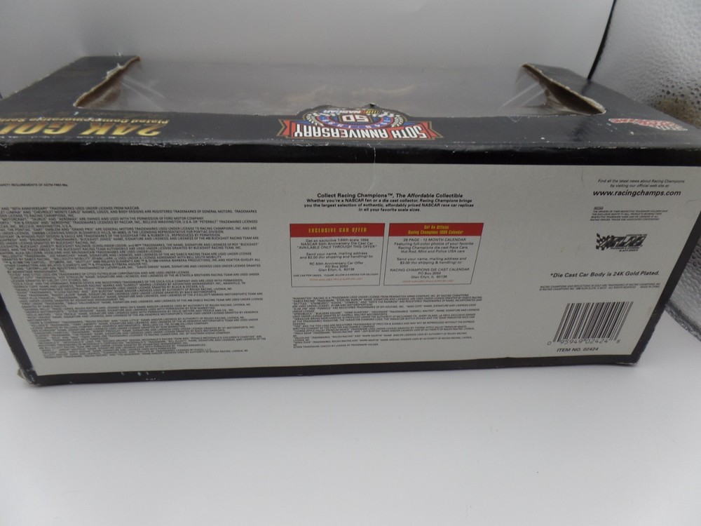UPC: Does not apply Features: Limited Edition, with case, sleeve and box, Commemorative Series 24k Gold Plated Model: Ford Taurus Vehicle Type: NASCAR Racecar Driver: Jeff Burton Vehicle Year: 1998 Series: Commemorative Series 24k Gold Plated Autographed: No Vehicle Make: Ford Organization: NASCAR Color: Gold gtin13: Does not apply Scale: 1:24 Material: die cast Race series: 50th anniversary Brand: Racing Champions