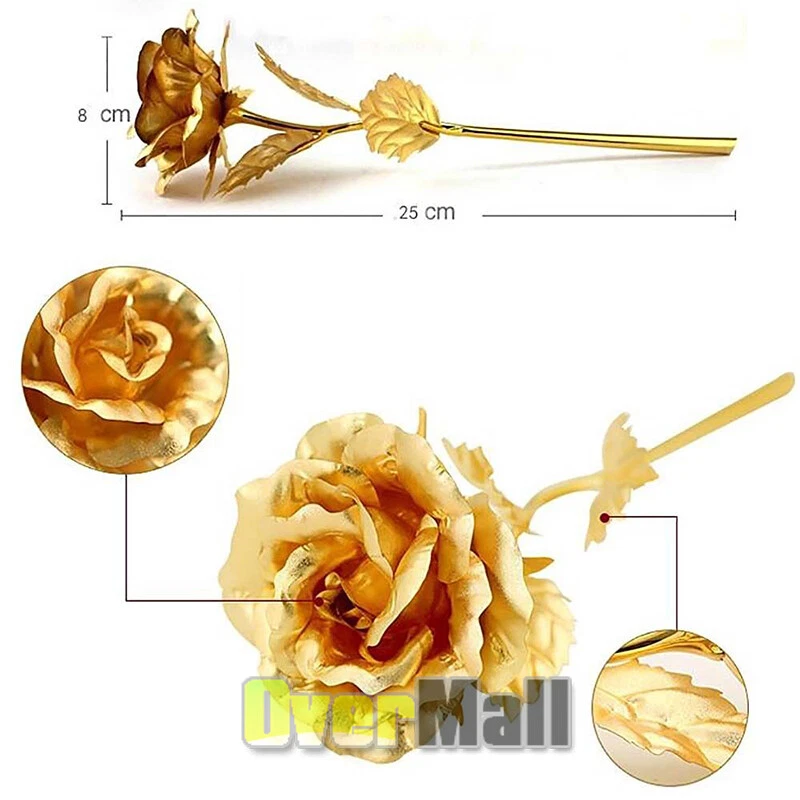 Lots Gold Plated Rose Flower Dipped In 24K For Valentine's Day LOVE Mom Gifts Lots Gold Plated Rose Flower Dipped In 24K For Valentine's Day LOVE Mom Gifts BEST CUSTOMER SERVICE ON OUR sale2015express EBAY STORE↓ ↓ ↓ 〓SHIP From US Local Stock 〓FAST & Free, 1-6 Days Arrival 〓FREE Return, Seller Pay!! 〓LIFETIME Money Back Guarantee 〓LIFETIME Free Replacement Guarantee 〓LIFETIME Warranty 〓QUICKLY Reply within 24 Working Hours 〓 MOST orders ship within 1 business day with Tracking Number 〓 ANY PROBLEM please email us before feedback, thanks! Add our listing to Watchlist Or Add to Cart , you will get more discount!!! Best Gift for Valentine's Day,Mother's day,Christmas,Birthday,Wedding occassion Suitable for wedding party,home table decoration etc Advantage ♥ Forever LOVE Symbol - The roses will last forever, Never die and wilt(made of high grade 24K 99.9% gold leaf/foil). ♥ Ideal for Valentines Day. Perfect gift to deliver" I love you forever" to your valentine on Valentines day. The ideal presents for Valentines Day, Mothers Day, Birthdays, Weddings, Christmas or any occasion that commemorate precious time with your loved ones! This exquisite artificial flower is vivid like always blooming and it is also good for table, desk or home decoration Features: * Petals, leaves on the surface are gold-plated. Rose rod is polyethylene gold-plated. The rose internal is polyethylene plastic. * Light weight, petal remains strong, not easy to fold, deformation, not faded. (note: the product internal skeleton is of polyethylene plastic material, which is very light, not metal) Specification: Total length: approx. 25cm Leaf length: approx. 5cm Flower diameter: approx. 8cm Flower bud diameter: approx. 6cm Package Includes: 1/2/5/6/10 x Dipped Foil Gold Plated Rose 1/2/5/6/10 x Gift Box Payment Shipping About Feedback About us Contact us Payment 1. Paypal Accept. 2. Payment should be sent within 4 (FOUR) days auction closing. Or unpaid dispute will be filed for closing auction. Shipping 1. Fast shipping from NJ, US. 2. Shipping available time: Mon. - Fri. exclude holidays 3. The orders will be handled in 24 hours after payment got. Ship to Paypal Address ONLY. About Feedback If you are dissatisfied for any reason, please do not be quick to leave negative/neutral feedback. We work hard to make sure EVERY CUSTOMER 100% SATISFIED and resolve any problem for you and always leave positive feedback to all our customers. About us 1. Welcome to OverMall, We pride ourselves on providing the outstanding service and high qualtiy products, make our customer feel confident buying online. 2. For the most US address, we offer free standard shipping . 3. By shopping with us, you can guarantee the latest technology for the best possible price. Contact us You are welcomed to contact me for any question. I will reply your email in about 24HRS in business days.