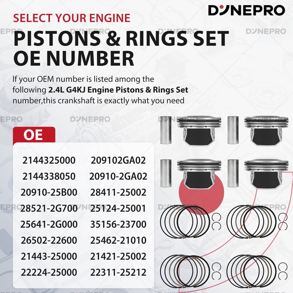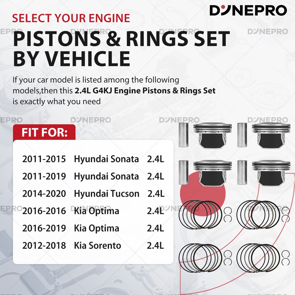 Engine Parts Installation Guide About Us Contact Us Feedback Engine Parts Installation Guide About Us Contact Us Feedback Dynepro® Pro Series Master Engine Rebuild Kit For Hyundai OEM Spec Certified Engine Repair Kit Precision Engineered · Factory Reliability ⭕Crankshaft Assembly Forged from EN40B High-Tensile Alloy Steel , precision-balanced to ±0.002mm. Triple-stage induction hardening ensures 500,000+ cycle durability for Hyundai’s Smartstream GDI engines , 3x lifespan . ⭕Aluminum Piston Set Hypereutectic Al-Si18 Alloy : Low thermal expansion, 20% lighter than cast iron. Molybdenum-coated skirts : Reduces cylinder wear by 35% in stop-and-go city driving. Integrated cooling channels : Optimized for turbocharged Gamma/Theta II engines,lifespan by 2x. ⭕ Cylinder Gasket Set Five-layer composite structure: 0.1mm stainless steel liner (resists high-pressure deformation) Aramid fiber sealing layer (withstands 350°C continuous thermal shock) Graphite coating (self-adapting micro-gap filling) Passed 100,000 thermal cycling tests for factory-grade sealing. ⭕ Timing Chain Kit Duplex Steel Chains : 30% stronger tensile strength vs. standard chains. PTFE-coated guides : Silent operation even at -30°C cold starts. Laser-etched alignment marks : Foolproof installation for D-CVVT systems. ⭕ Built For Hyundai Owners: ✔️ Oil sludge cleanup (Theta II/Lambda engine rebuilds) ✔️ Timing chain rattle fixes (Nu/Gamma engines, includes tensioner tool) ✔️ Turbo failure prevention (1.6T/2.0T models, full gasket/seal refresh) ✔️ 200,000km+ overhauls (full bolt kit with factory torque specs) ⭕ For Hyundai TechTrust : ✔️ Restore factory power. Drive with Korean precision. ✔️Order Now – Free OEM Repair Manual Included! Support: Email us (Master Techs on call) ⭕ Why Genuine? ⚠️ Cheap parts fail: Non-genuine pistons crack under GDI’s 150-bar fuel pressure. Knockoff chains stretch, causing valve-piston interference. ✅ for Hyundai spec Certified : 100% material compliance with Hyundai MS-350 durability standards. Direct from OEM Plant spec suppliers. 2-year unlimited-mileage warranty. Vehicle Application Compatible with: G4KJ 2.4L engines. for Hyundai Sonata 2011-2015 2.4L FULL HYBRID EV-GAS (FHEV) Naturally Aspirated for Hyundai Sonata 2011-2019 2.4L GAS Naturally Aspirated for Hyundai Tucson 2014-2020 2.4L GAS Naturally Aspirated for Kia Optima 2016 2.4L FULL HYBRID EV-GAS (FHEV) Naturally Aspirated for Kia Optima 2016-2019 2.4L GAS Naturally Aspirated for Kia Sorento 2012-2018 2.4L GAS Naturally Aspirated Note: VIN confirmation required. What's included in this complete bundle set -Pistons -Piston Rings Shop Now >> Instant Fitment Email your Hyundai model (e.g., Elantra, Tucson, Santa Fe) and year → Get a repair kit tailored to your VIN. Restore factory power, drive like new. Tech Support: Email us (Provide VIN for tailored parts list) Learn More Learn More Learn More PAYMENT We accept eBay managed payments for all orders. If you have any questions, please contact us. SHIPPING Ordering this kit requires additional information: the vehicle engine model as well as the VIN (17 digits), and also requires you to verify a match to your vehicle using the vehicle application data on Ebay. Be sure to provide this information when placing your order or via a separate message. Product will be shipped within 1-3 business days after full payment is received and verified. Delivery Time is about 3-7 business days to most of countries. We ship the package to your shipping address in eBay instead of the one in PayPal. Please tell us your shipping address if it is different from the one in eBay. RETURNS We offer eBay's best return policy. If you utilized Ebay's fitment and the parts you received do not fit your vehicle, we will pay to have them returned. Should you desire to return this kit for any other reason, Includes kits that are incorrect because you did not provide the VIN in the order notes, you will be responsible for return shipping. These kits are heavier and cost more to ship, so we ask that you provide vehicle information and verify suitability before ordering.Unfortunately, we cannot accept returns from international customers at this time. ★★★★★ So far the engine overhaul kit has performed well. I love the performance with this kit installed. On my 2004 F150. Installation was easy. Everything is perfect. Considering this kit is cheap, it doesn't get any better than this. ----James ★★★★★ This was a great price. lt was made in the USA. After 10,000 miles it is running great. ----Liam ★★★★★ As of the time of this review this is well worth the money and it fits as it should. ----Noah ★★★★★ This set was installed perfect fit. lt has been installed on a truck that has been used very much every day. Working perfect and so much cheaper than the auto stores. ----Ethan ★★★★★ Seemed to be a perfect replacement part and it works. ----Oliver ★★★★★ Everything fit how it was supposed to and have been driving it for a week with no problems. ----Benjamin ★★★★★ The seller was very nice and provided me with professional advice on the installation, which was a breeze and is still going strong after 10,000 miles. ----Michael Learn More Learn More Learn More PAYMENT We accept eBay managed payments for all orders. If you have any questions, please contact us. SHIPPING Ordering this kit requires additional information: the vehicle engine model as well as the VIN (17 digits), and also requires you to verify a match to your vehicle using the vehicle application data on Ebay. Be sure to provide this information when placing your order or via a separate message. Product will be shipped within 1-3 business days after full payment is received and verified. Delivery Time is about 3-7 business days to most of countries. We ship the package to your shipping address in eBay instead of the one in PayPal. Please tell us your ship