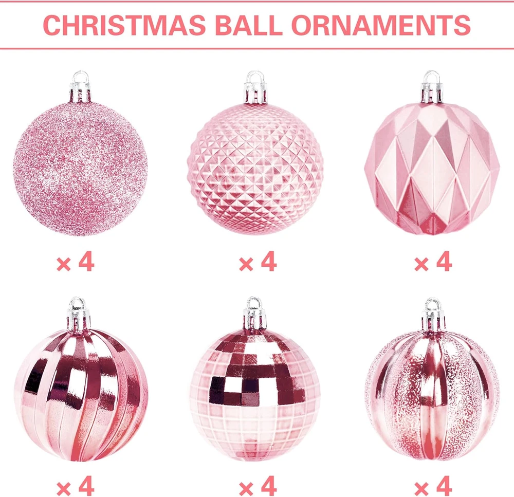 Store New Arrivals Add to Favorite View Feedback Contact Fast deliveries to the customer's home Quality customer service John Make the customers happy! 24PCS Large Christmas Balls Ornaments,60Mm/2.4 in Shatterproof Plastic Decorative Xmas Tree Ornaments, Assorted Christmas Ball Ornaments for Wedding Mothers Day Party Decorations (Pink) Description 【Package Includes】You will get 24pcs pink Christmas tree balls in total. Each Christmas ball measures 60mm/2.36 inch in diameter. Various Christmas themes provide you multiple choices to decorate your home 【Glittering Decoration】Christmas balls ornaments come in 6 different surfaces such as matte, glitter, shiny etc, looking glittering and adorable. Our Christmas tree ornaments will decorate your Christmas tree and brighten your holidays Durable Material: The Christmas hanging ornaments are made of durable plastic with vivid printing, eye-catching. They are lightweight and won't weigh down the Christmas tree branches. Creating a simplicity yet harmonious touch to your Christmas tree and room. 【Easy to Hang】There is a rope on the top of each Christmas tree ball for your easy hanging. You can hang our Christmas ornaments on Christmas trees, windows, ceilings, doors, walls and anywhere you like 【Ideal Holiday Decor】These Christmas tree ornaments are ideal choice for home, office, school, indoor decor, decorations hanging on branches and Christmas theme party supplies. Christmas tree balls are still versatile for birthday party, weddings, engagements, anniversaries, party variegated displays, commercial holiday decoration and more Product Description JULMELON Christmas Ornament Set You will receive 24 pieces of plastic Christmas ornaments balls. Each Christmas ball decoration top is equipped with hook cord for easy hanging,suitable match with your Christmas tree, windows, ceilings,etc. The size of Christmas tree ornaments are 60mm/2.36 inch . These are ideal for creating a romantic and festival atmosphere. Various Colors Our Christmas bulbs ornaments have nine colors to choose from,can meet your daily and holiday needs,and the rich color design can be well matched with the decoration of other Christmas elements, which will increase a strong festive atmosphere at your Christmas party. Six Styles Outdoor Christmas Ornament Hanging Rope Design Glittering Decoration The Ideal Decoration for Christmas Tree These Christmas tree ornaments are ideal choice for home, office, school, Christmas tree and Christmas theme party supplies. You can use christmas ornament set to decorate the Christmas tree with your family to make your Christmas tree more charming. Item Weight 8.1 ounces Color Pink Country of Origin China Package Dimensions 9.65 x 7.01 x 4.72 inches ABOUT US We offer the best prices around on high quality products. Our E-store includes media such as books, movies, music and games while offering electronics, toys, sporting apparel, clothing, tools, general home, garden items and more. SHIPPING We are always working hard to ensure your package arrives as soon as possible. Please understand that some factors like weather, high postal traffic, and the performance of shipping companies are outside of our control. We offer free shipping to the lower 48 states and ship within 2 business days of payment, usually sooner. We do not accept P.O. Boxes. Please provide a physical address. For shipping outside of the continental USA, we only use eBay's Global Shipping Program. The item is shipped to KY and then sent to the rest of the world. International customers are responsible for all duties and taxes. Continue to 'check out' to calculate costs for shipping the item to your country. Messages regarding eBay's Global Shipping Program MUST be directed at eBay EXCLUSIVELY. RETURNS We offer a 30-Day Return Policy on items in which you are not completely satisfied with. You have the option of a full-refund or an exchange of the item. No returns are available on items shipped outside of the USA PAYMENT We accept PayPal. CONTACT US This page content is yet to come Please ad us to your favorite seller and visit again later Thank You CUSTOMER SATISFACTION We try our very best to make sure every customer is completely satisfied. If there's a problem, message us! We're happy to help. WE ACCEPT
