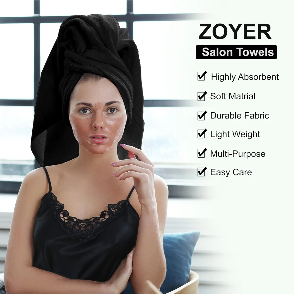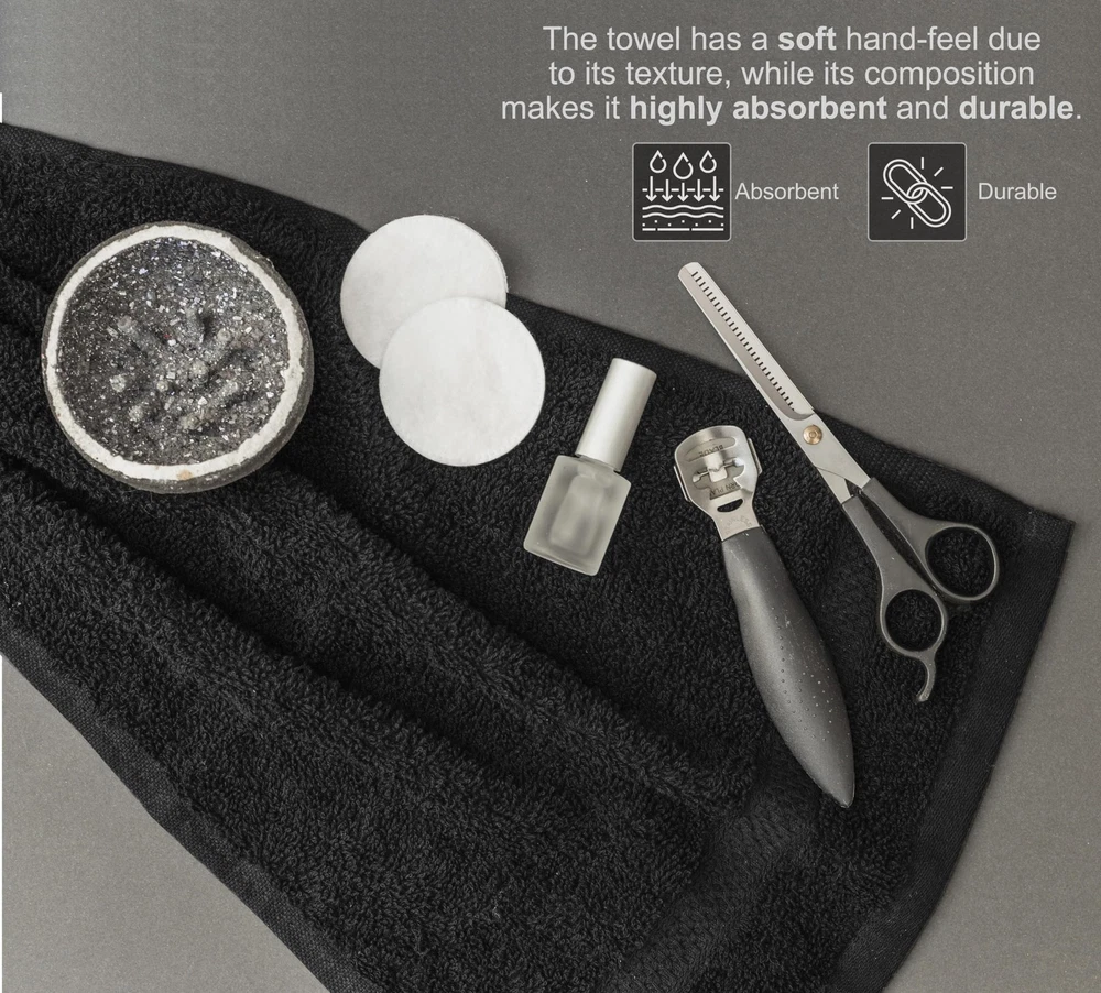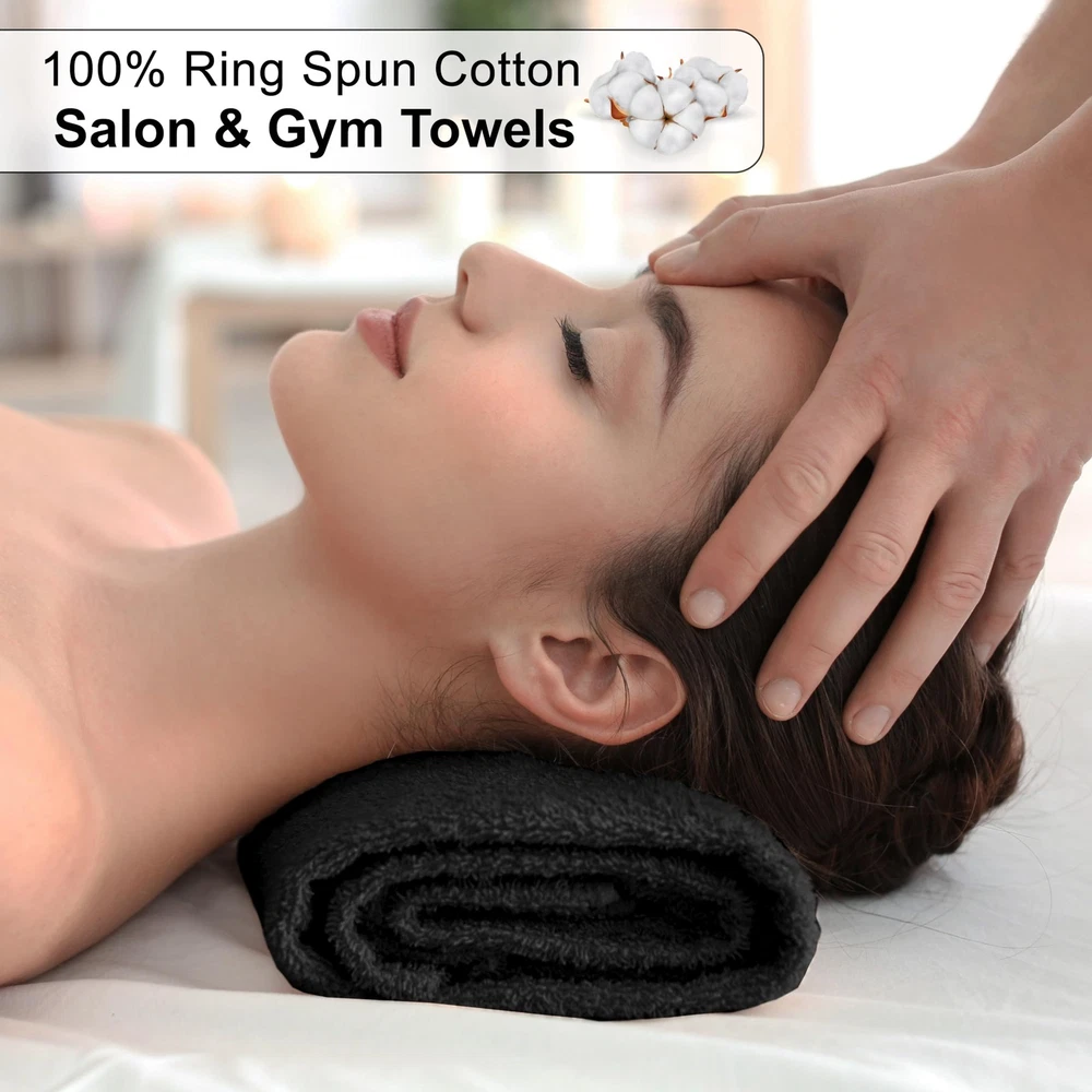Cotton Salon Towels (24-Pack, Black) - Not Bleach Proof Gym Towel - Hand Towel - 16 inches x 27 inches - Ring Spun-Cotton, Maximum Softness and Absorbency, Easy Care. Softness: What could be softer than fluffy cotton fibers? After every wash, you’ll notice that these hand towels seem to get softer, making them ideal for clients who have sensitive skin. Thirstiness: Cotton is incredibly thirsty. When it interacts with moisture, it quickly soaks up as much as it can. You can use fewer towels each day to accomplish tasks, reducing your laundry time and energy bills. Fast-Drying: Our salon hand towels contain 100-percent cotton fibers that dry rapidly when they’re dried in a commercial dryer or are appropriately air-dried. Not Bleach Safe But Luxury: These salon towels made