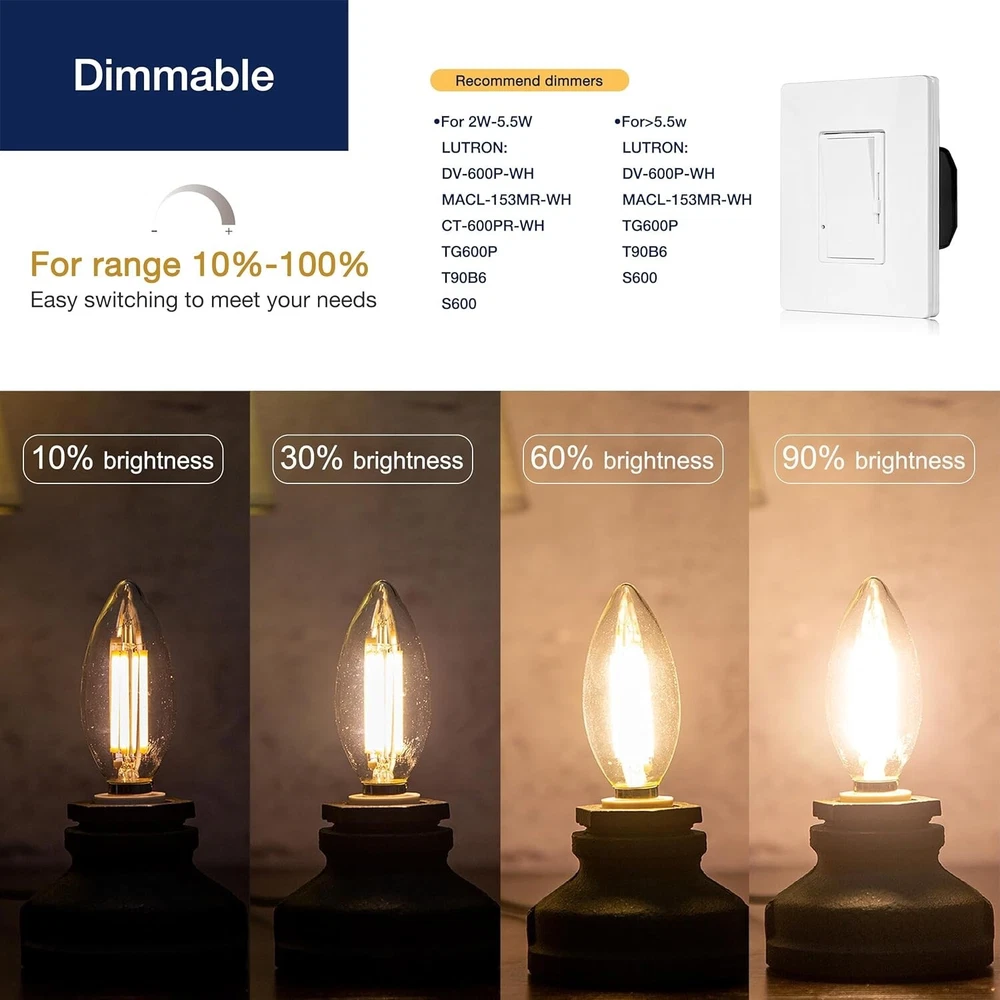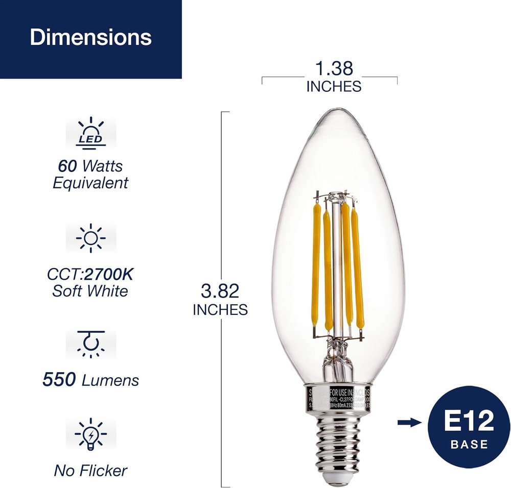 24 E12 Base Soft White Dimmable LED Bulbs - 60W Equivalent, Indoor Lighting ‹ › ‹ › ‹ › ‹ › ‹ › ‹ › ‹ › ‹ › 24 E12 Base Soft White Dimmable LED Bulbs -60W Equivalent, Indoor Lighting Features: Energy Efficiency: Replace 60 Watts incandescent bulbs with our energy-conscious 4.5W LED filament light bulbs. Longevity: Enjoy illumination for approximately 25,000 hours, based on 3 hours of daily use. Dimmable: Compatible with most modern dimmers, allowing you to effortlessly adjust brightness to match your mood. Easy Installation: Designed for E12 small base, easily fits candelabra and chandelier fixtures. Remember to cut off power before installation. Soft White Glow: Emits 450 Lumens instantly at 2700K, bathing your space in a warm and inviting ambiance. Versatile Usage: Perfect for a variety of indoor environments including bedrooms, living rooms, hotels, offices, museums, galleries, shopping malls, and restaurants. Benefits: Save energy without compromising brightness. Create a calming and cozy atmosphere in your home or workspace. Dimmable feature allows you to customize light intensity for various occasions. Long-lasting performance minimizes the need for frequent replacements. Wide compatibility with various lighting fixtures makes it versatile for all of your settings. Why choose our E12 Base Soft White Dimmable LED Bulbs? Looking for an elegant lighting solution that combines energy efficiency with a warm, inviting glow? Our 24-pack of E12 Base Soft White Dimmable LED Bulbs is the perfect choice. These bulbs not only replace traditional incandescent options without sacrificing brilliance but also allow for customizable lighting that adapts to your mood and ambiance. Their long-lasting lifespan and versatile applications make them an essential addition to any home or business. Transform your lighting experience and elevate your space—order your package today! Shipping Free & Fast Shipping - We offer free shipping to most of the USA with a normal delivery time of 3-7 days. However, due to the current situation, additional delivery time (up to 3 weeks) may be required for some items. Alternative Carriers - We may use alternative carriers (e.g. USPS, FedEx, UPS, etc.) to ensure your package arrives safely and on time. Due to the use of multiple carriers, we are unable to provide a tracking number automatically. Handling Time - Orders are processed and shipped within 1-2 business days of receiving cleared payment. Shipping Restrictions - Shipping to Alaska, Hawaii, Puerto Rico, Guam, and other US territories may incur shipping charges or delivery restrictions. Please contact us before ordering, or your order can be refunded/cancelled. State Restrictions - There may be restrictions based on your state of purchase. For example, certain items may not be shipped to California due to state regulations. Contact for Tracking Updates - If you require tracking updates or have any concerns about the delivery of your order, please feel free to contact us, and we will be happy to assist you. Return Please see our eBay Return Policy. Thank you. Payment We accept all major credit cards, PayPal, and Apple Pay for your convenience. Your payment information is secure and encrypted to ensure a safe and seamless transaction. Please complete your payment within 3 days of purchase to avoid any delays in shipping. Feedback Your feedback is extremely important to us. We strive to provide the best products and customer service possible. If you are satisfied with your purchase, please take a moment to leave us a positive review. If you have any concerns or issues with your order, please contact us before leaving negative feedback. We are committed to resolving any problems and ensuring your satisfaction. Contact Us If you have any questions or concerns, please feel free to reach out to our customer support team. You can contact us through the eBay messaging system. We are available Monday to Friday, 9:00 am to 5:00 pm EST, and we will do our best to respond to your inquiry within 24 hours. Thank you for supporting our small family business! UPC: Not Set Item Height: Not Set Item Length: Not Set Item Width: Not Set Product Line: Not Set Unit Quantity: 24 count Features: Dimmable,Energy Efficient,Easy To Install Material: Glass Labels & Certifications: Not Set Brand: Unbranded Bulb Shape Code: B11 Lighting Technology: LED Type: Chandelier Bulb Bulb Shape: Bulb Bulb Wattage: 4.5 W Finish: Soft White Light Color: Soft White Output Voltage: 120 V Voltage: 120 V Color Temperature: 2700K Soft White Energy Star: A Lumens: 400-799 lm Bulb Life Hours: 25 MPN: Not Set EC Range: Not Set Indoor/Outdoor: Indoor Connectors: Screw Amperage: 1 A Style: E12 Model: Not Set Number of Bulbs: 24 Year Manufactured: Not Set Country/Region of Manufacture: Not Set LED Chip Code: 5050 IP Rating: IP20 Beam Angle: 180° or More Manufacturer Warranty: Not Set LED String/Strip Type: WS2812 Switching Cycle: 1 Unit Type: Unit