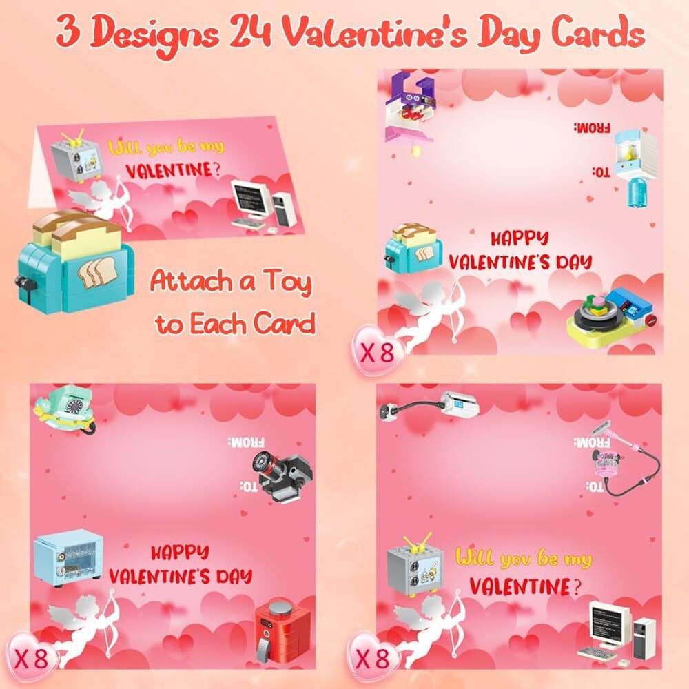 24 Packs Valentines Day Gifts for Kids, Valentines Day Cards with Electric Appliances Building Blocks for Kids Valentine Day Gift Exchange, Valentine Classroom Prize, Valentine's Greeting Cards Super Value Pack -- The Valentines day party favor set come with 24 sets of 12 different electric appliances designed un-assembled building blocks, 24 cute Valentines day cards. And each set of blocks has graphic instructions, your kids can learn different electric appliances toys by set up by themselves. Premium Quality -- Our Valentine building block kits are made of environmentally friendly and safe materials non-toxic materials to and free from odors, non-toxic and durable that is so safe for your kids that feel free to let them play funny. Unique Designs -- There are 12 unique designs of electric appliances included. And each pack of blocks comes with a valentine card. Combine 12 different electric appliances together to build a electric appliances store! Kids will enjoy playing with our Valentines cards and electric appliances building blocks! Ideal Valentine gift for boys and girls. Easy to Assemble -- The Valentine building blocks toy contains step-by-step graphic instruction, clearly showing each step and the block pieces you need. kids can easily set up by themselves. Perfect Gifts -- This electric appliances building block kids Valentine party favors set brings joy to many occasions, suitable for kid's Valentine's Day, especially for classroom exchange gift, Valentine's party favors, classroom prizes. Exchanging these novel valentine gift cards, share your love and gratitude to classmates, friends and families, the one who receive the gift cards must be surprised and happy.